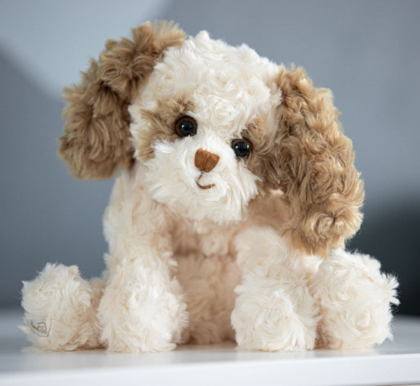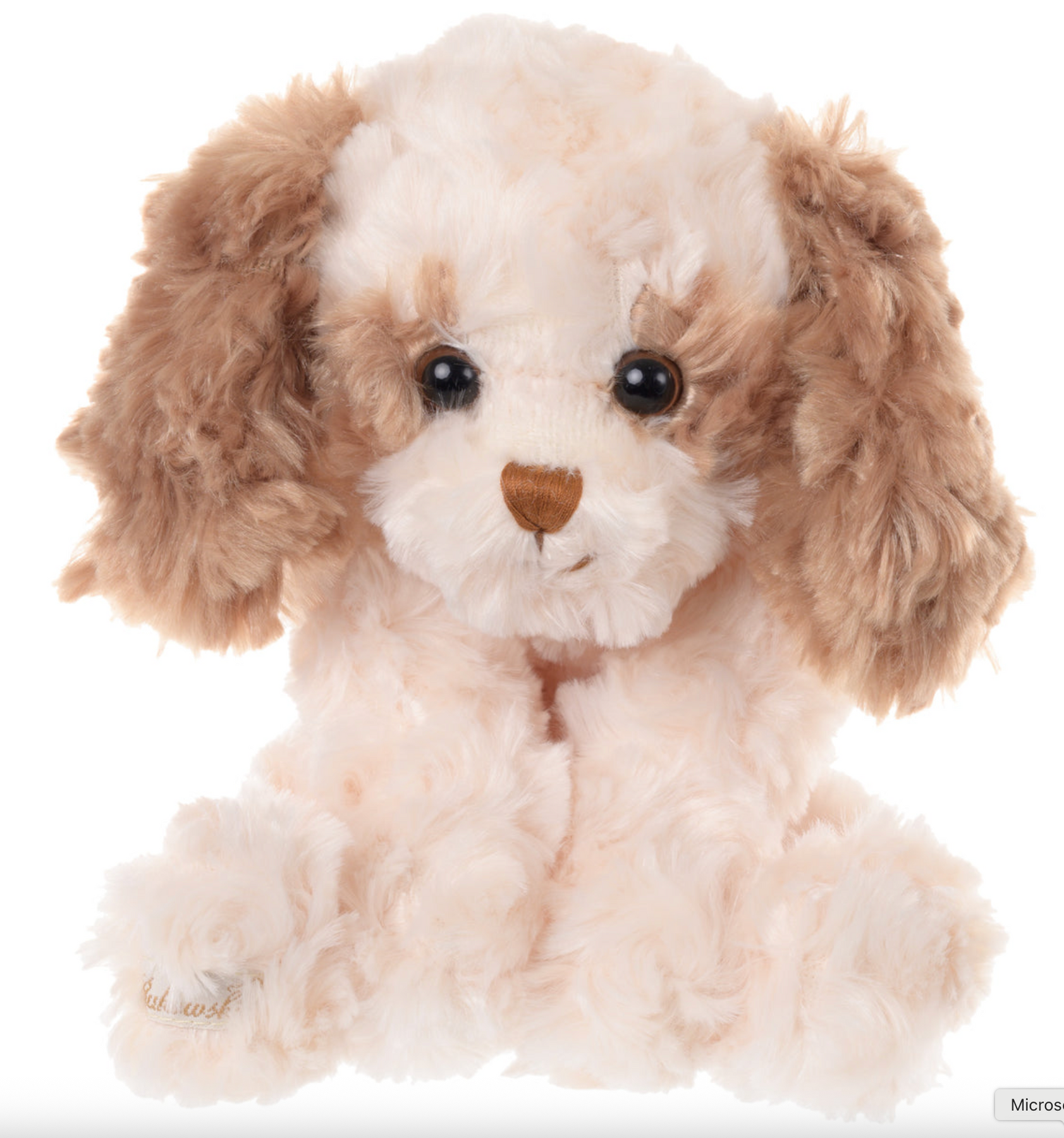 Like her puppy brother Buddy, Buddylina has floppy ears that are irresistibly cuddly. She has white and tan curly fur to keep you toasty when you snuggle up with her at night. This sweet dog is obedient and will sit for you whenever you ask her to.