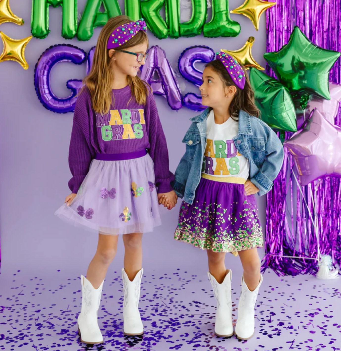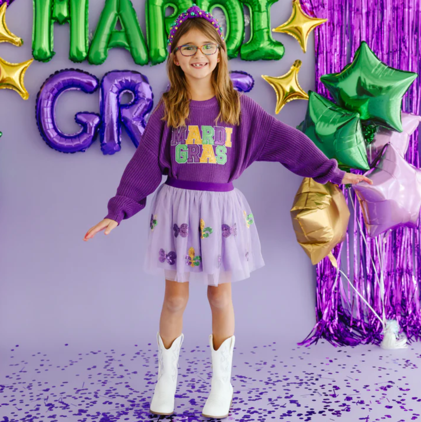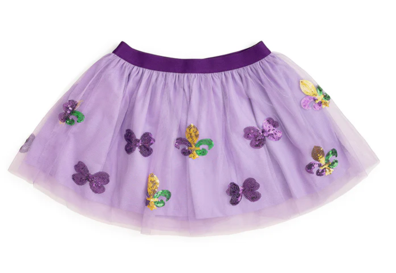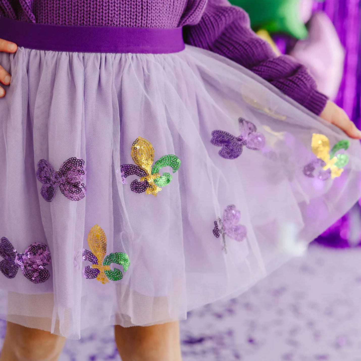 The Fleur De Lis Sequin Mardi Gras Tutu is a fun skirt and dress up tutu for any Mardi Gras celebration or everyday wear!