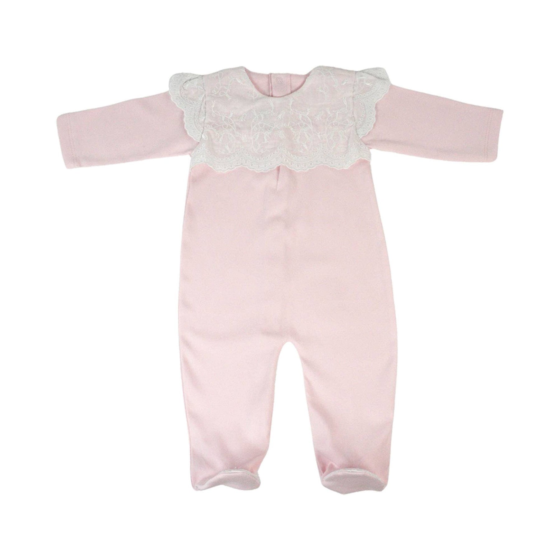 Pink Long Sleeve Footie with Lace Collar - Marcela