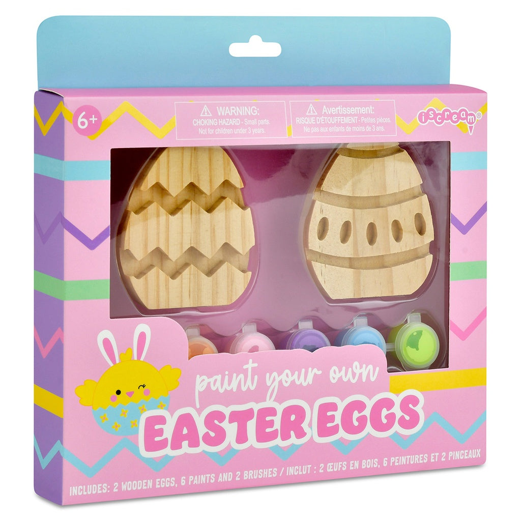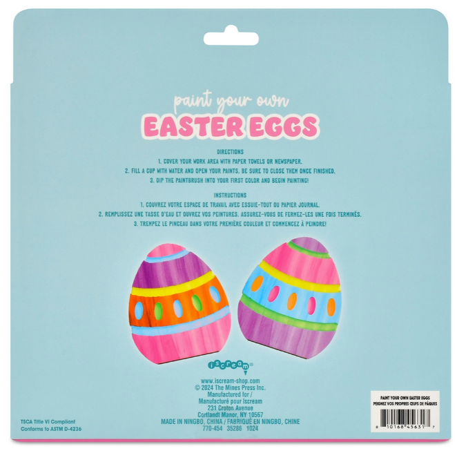 Paint Your Own Easter Eggs Art Craft Let little artists hop into creativity with this delightful DIY egg-painting set! Packed with 2 smooth wooden eggs, 6 vibrant paint colors, and 2 brushes, kids can design their own masterpieces from scratch. Perfect for Easter baskets, rainy-day fun, or creative playdates. The compact 9½" × 8" × 1" size makes it easy to tuck into baskets or store on shelves. Watch imaginations bloom as children bring their egg designs to life!