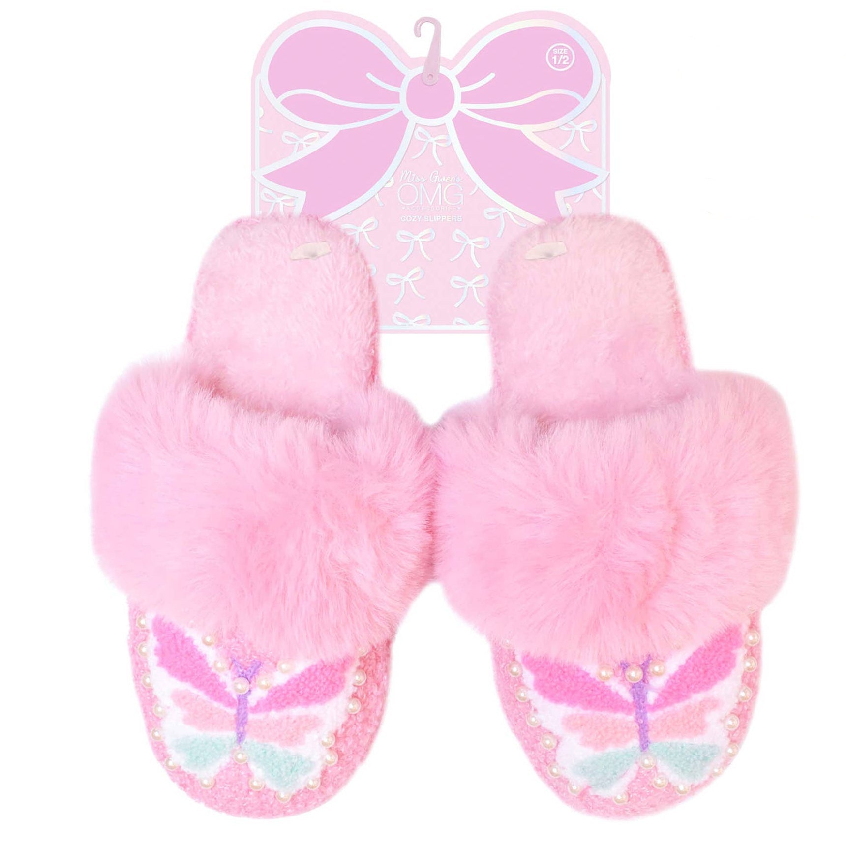 Treat your tween’s feet to cozy fun with these Pink Butterfly Slippers from OMG Accessories. Designed in youth girl sizes 11/12 through 4/5, these slippers feature soft, fuzzy fabric and charming butterfly accents that add a playful touch to every step. Perfect for lounging at home or brightening up chilly mornings with comfort and style.