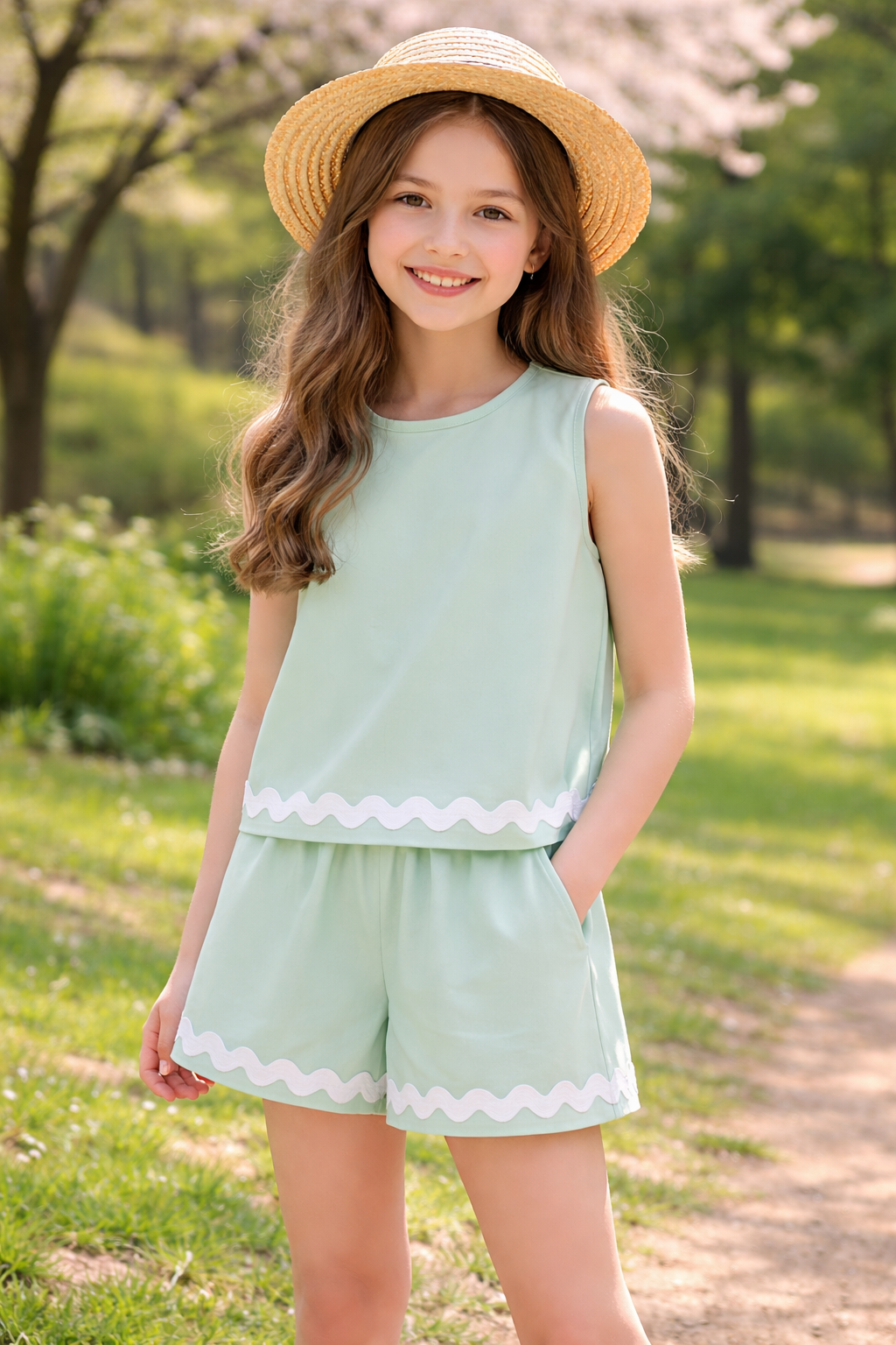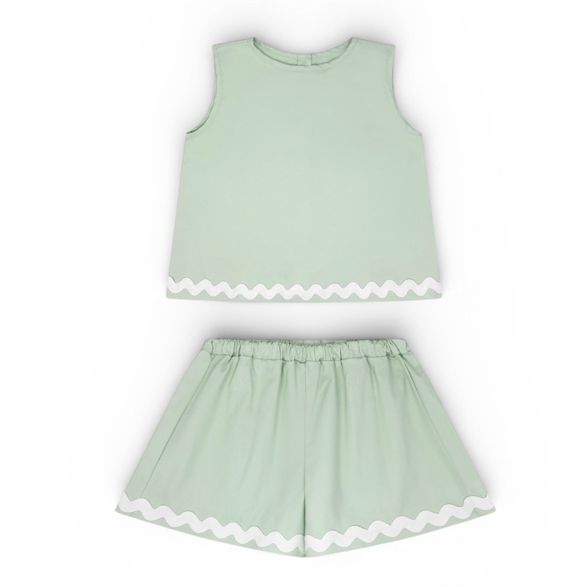Seaside Mint Ric Rac Short Set Elevate her casual wardrobe with this sophisticated two-piece set, featuring a refined mint hue and charming ric rac detailing. The coordinated top and shorts combination offers effortless versatility—perfect for weekend outings, casual gatherings, or relaxed afternoons. Quality construction and thoughtful design make this set a polished addition that transitions seamlessly from day to evening plans. A timeless piece she'll reach for again and again.