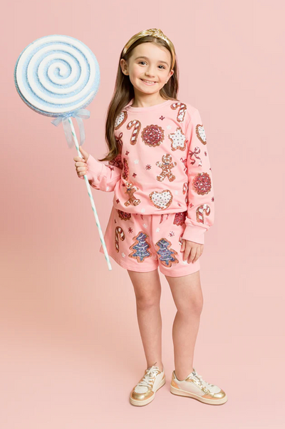 Sequin Christmas Cookies Pink Short Set - Belle Cher