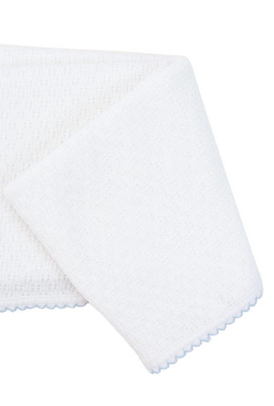 White Receiving/Swaddle Blanket, Blue Trim - Paty