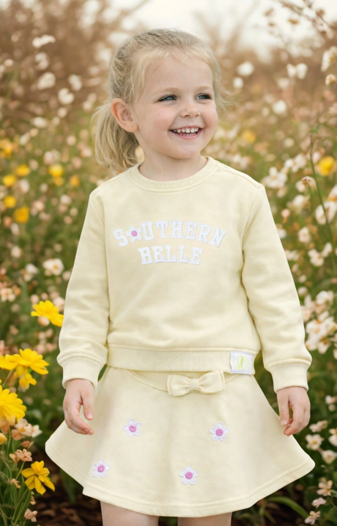 The Daisy Bow Skort is the go-to staple your little girl will reach for all spring and summer long. Featuring a charming bow detail and practical skort design, it's perfect for playdates, family outings, and everything in between. Pair it with Bits & Bows' Southern Belle Sweatshirt for the sweetest outfit she'll wear all year long.