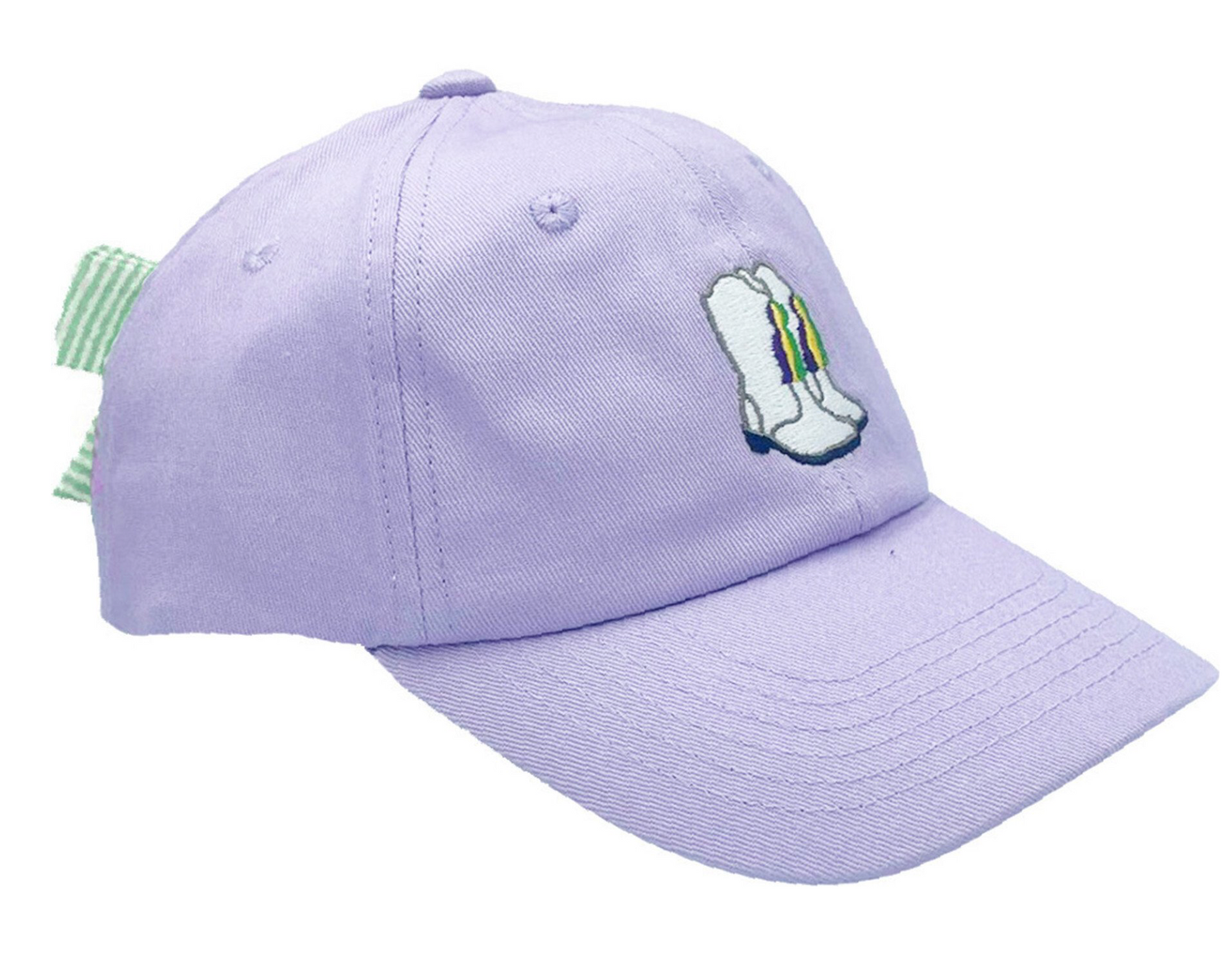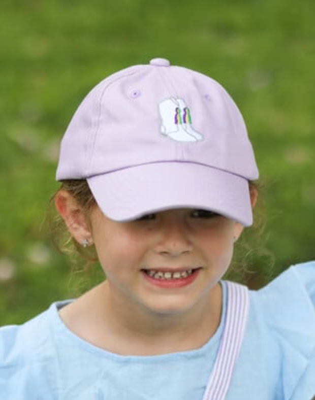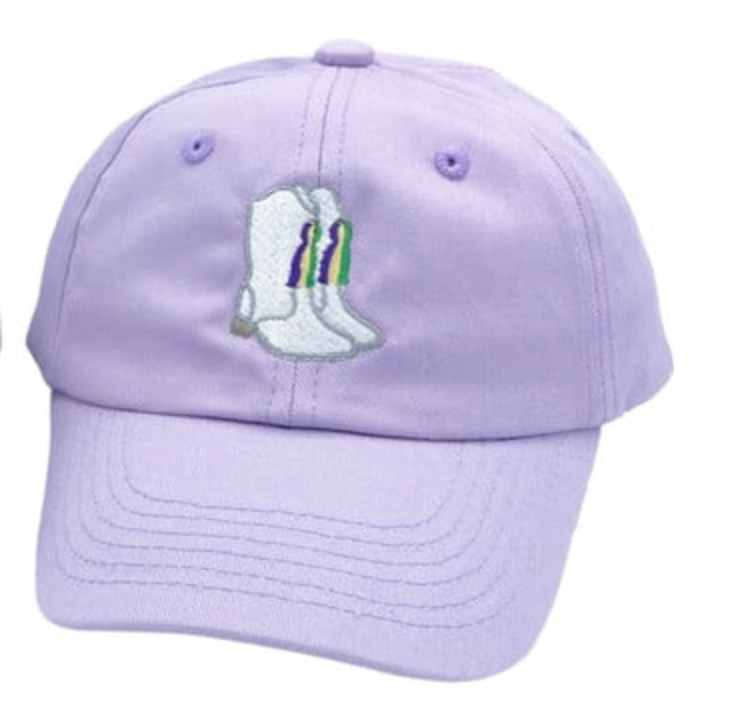 Celebrate the spirit of Mardi Gras with this charming hat from Bits & Bows! Featuring adorable marching boot embroidery and crafted from soft twill, it captures the joy of southern tradition in playful style. The iconic purple, gold, and green color palette makes it perfect for parades, parties, or everyday fun. Let the good times roll with this festive accessory that brings a touch of New Orleans magic to any child's wardrobe.