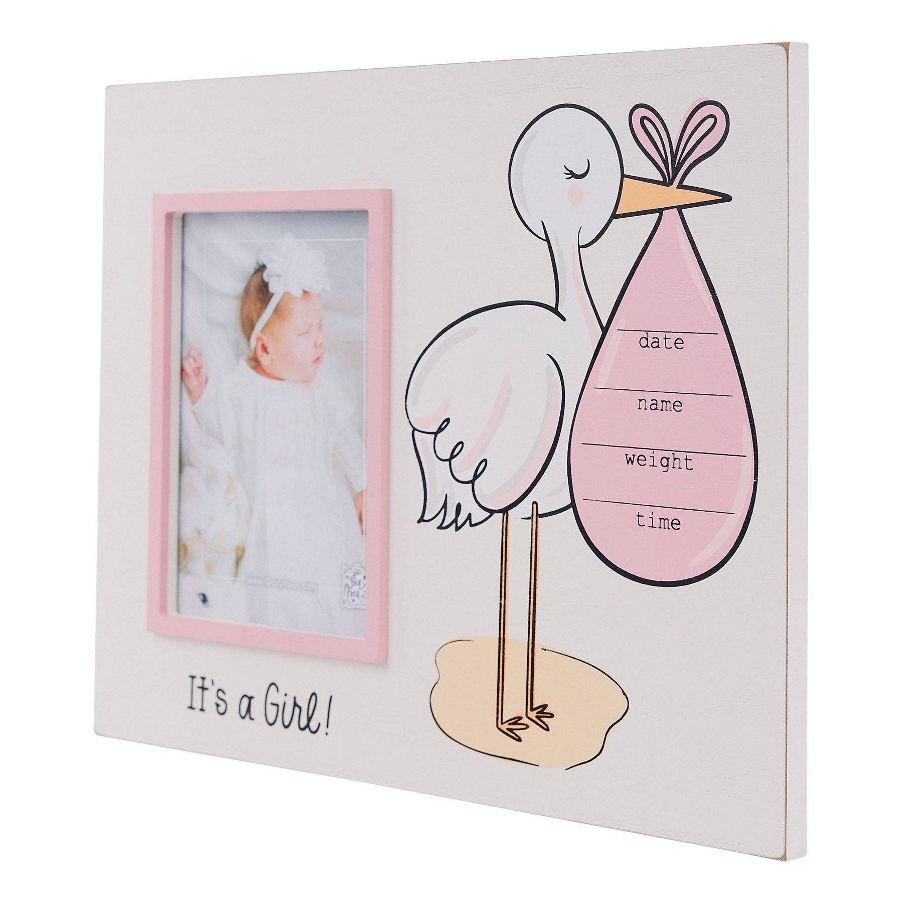 Celebrate the arrival of your baby girl with the 'Stork It's A Girl' Frame. Perfect for baby showers, new parents, or welcoming a newborn, this adorable frame captures the joy of a new beginning. Featuring a charming stork design, it’s the perfect way to showcase your baby’s first photo. A great gift for new parents or a sweet addition to nursery decor. Shop now to cherish this special moment forever! * Original Design * Dimensions: 11" x 14" * This frame fits a 5" x 7" photograph. * Each frame comes ready to hang on a wall with an inset keyhole on the back or sit, including a peg for easy display. Check out our entire Frame Collection here!