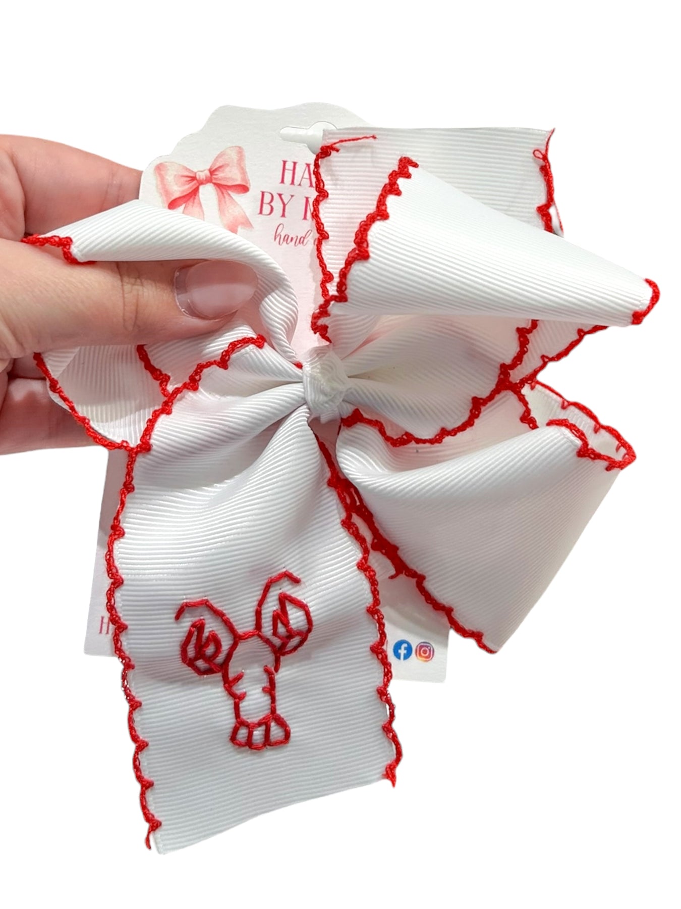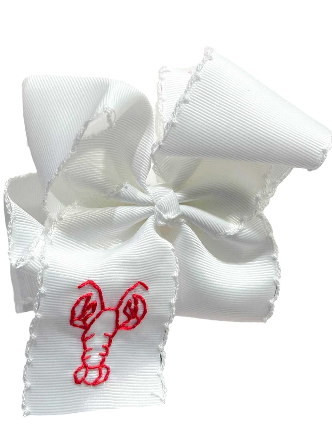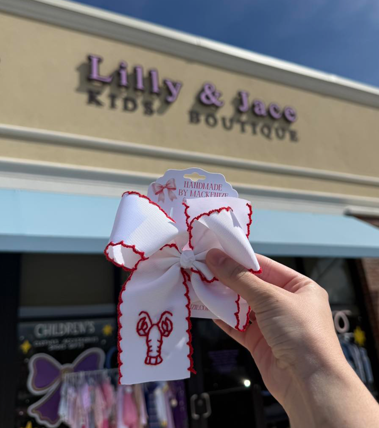 Adorable hand-stitched crawfish details bring Louisiana charm to three versatile bow styles. Choose from an 8" tails-down ribbon bow for ponytails and buns, a 5" alligator clip for secure all-day wear, or a 5" headband for comfortable, hands-free styling. Each features crisp white fabric with a charming red crawfish accent, perfect for adding playful personality to any outfit.