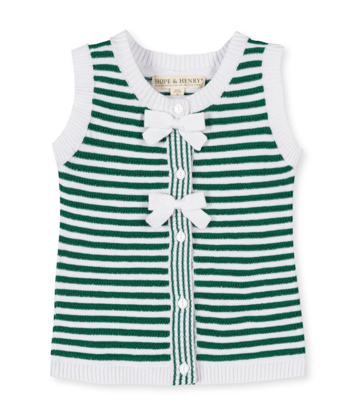 A warm weather staple, this fun sweater tank looks adorable and is so comfortable for every day wear. Features a button front closure with pretty bow details for a feminine touch. Pairs perfectly with our linen shorts or skorts for a fresh spring or summer look.