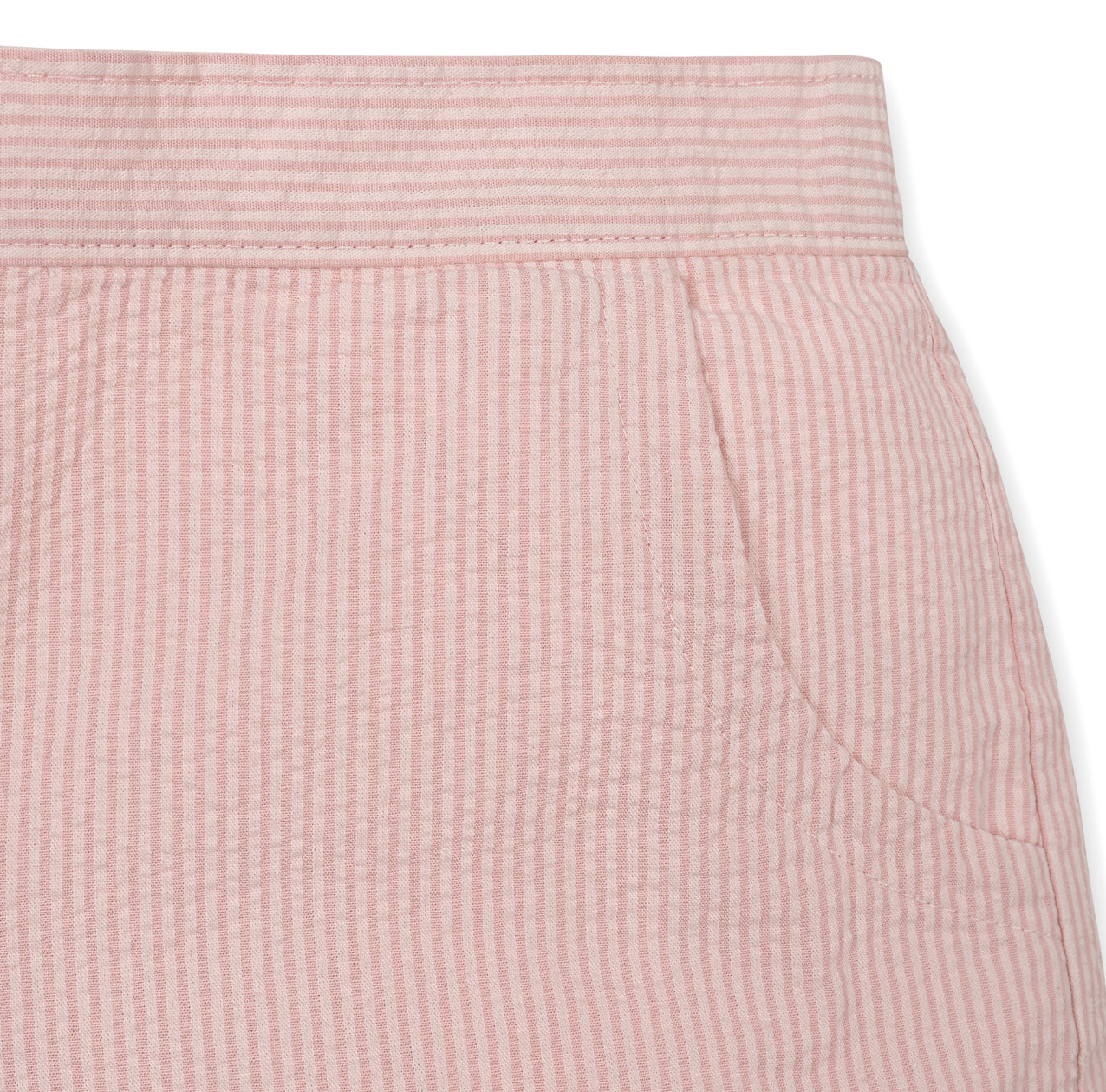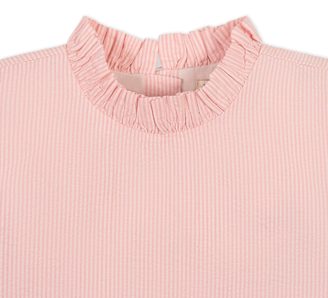 Introduce your daughter to effortless spring style with this charming seersucker short set. The top features a delicate ruffle collar, decorative bow at the back neck, and center-back button closure, while the coordinating shorts showcase ladder-trim detailing at the hem and practical side pockets. Crafted entirely from GOTS-certified organic cotton, this set combines softness with sustainability. The elastic waistband ensures comfortable all-day wear, making it an ideal choice for warm weather adventures and special occasions alike.