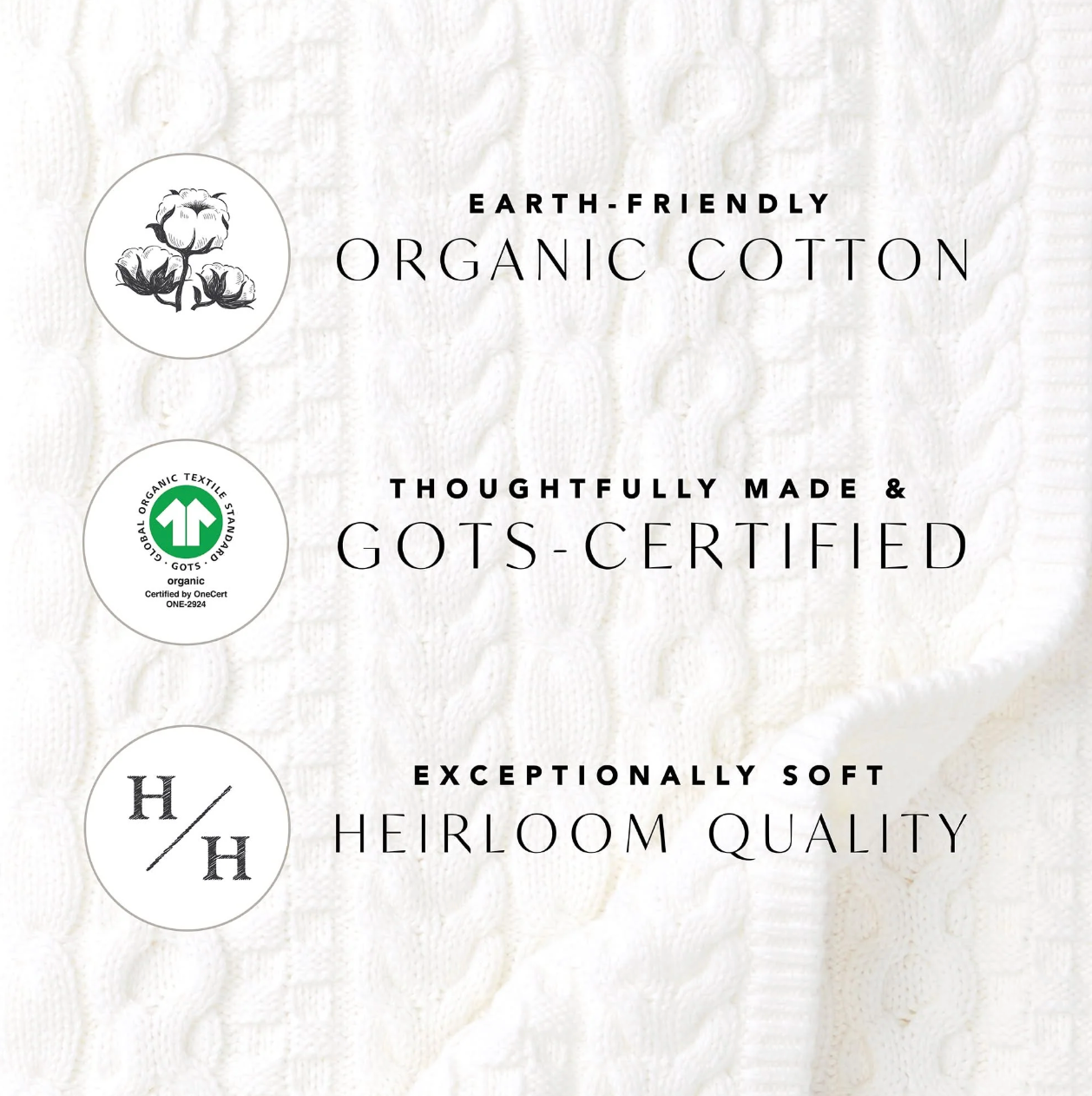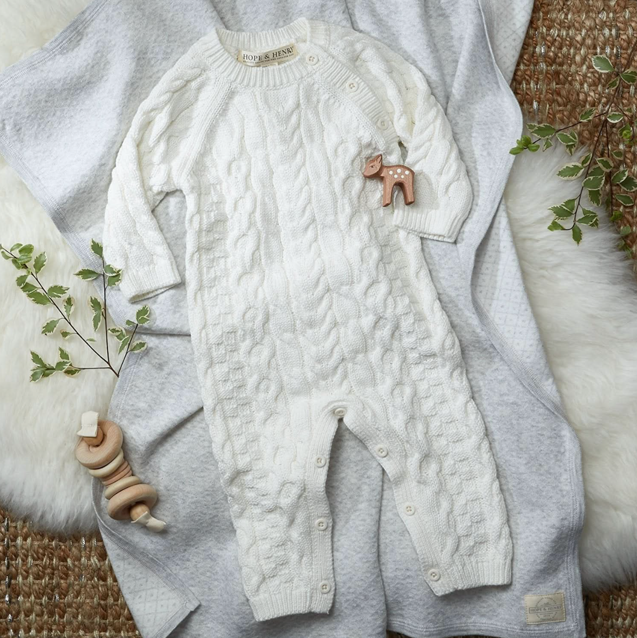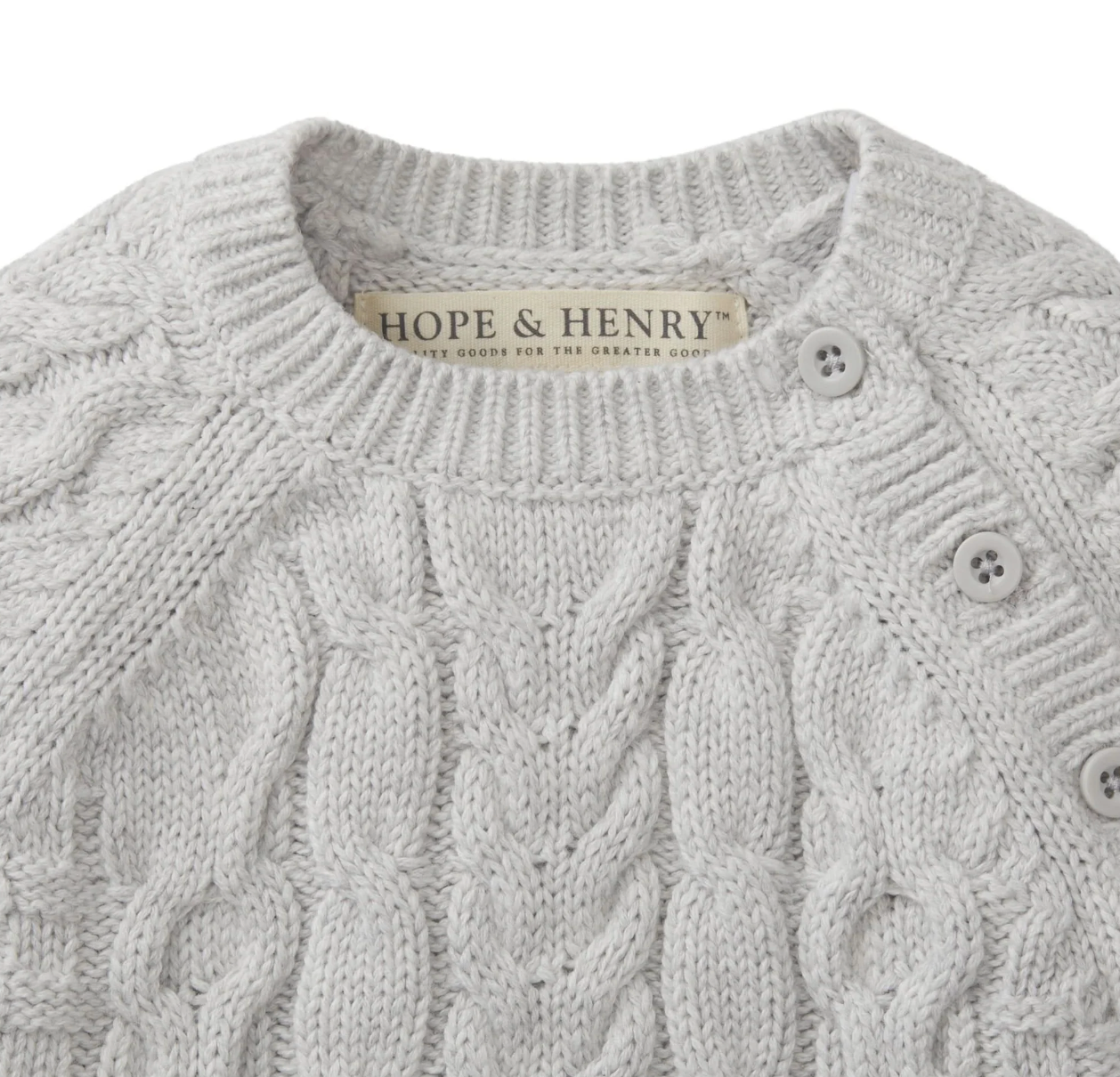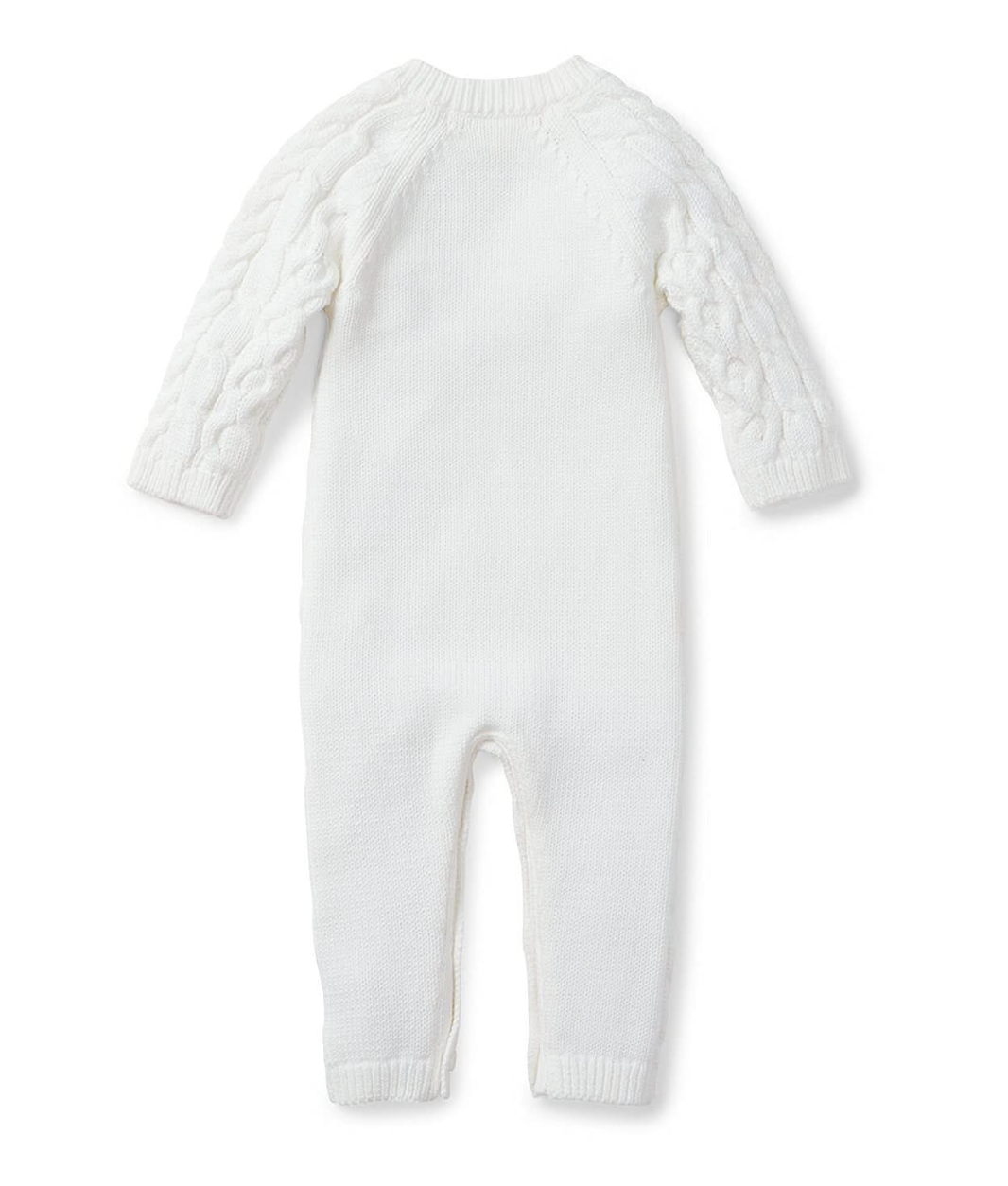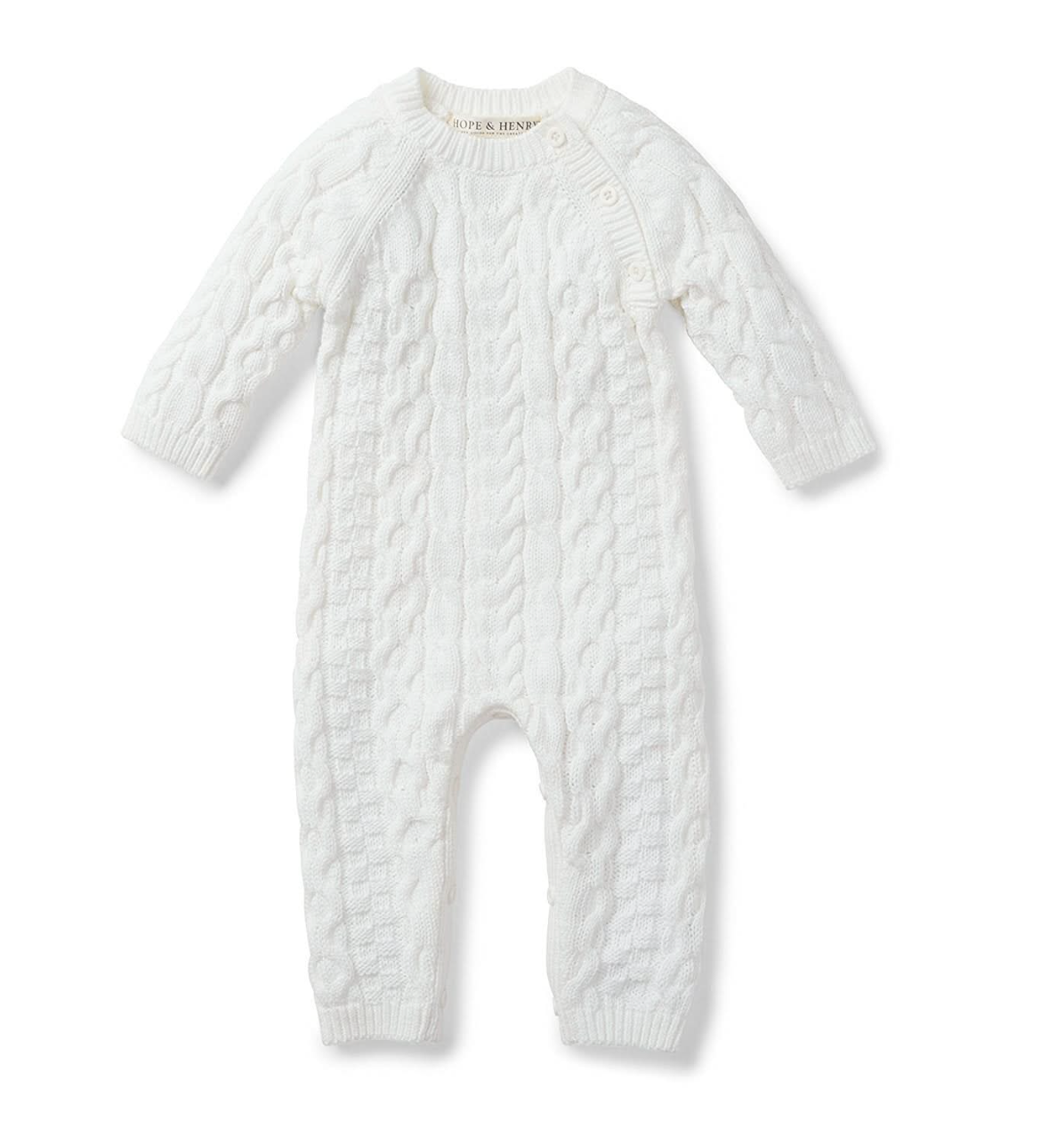 This classic cable knit sweater romper in our signature soft organic cotton will be the heirloom piece for your baby that you hold onto forever. Dressing baby is easy with button openings at both the shoulder and inner legs. Cozy and comfortable, this makes the perfect gift for a sweet little one.