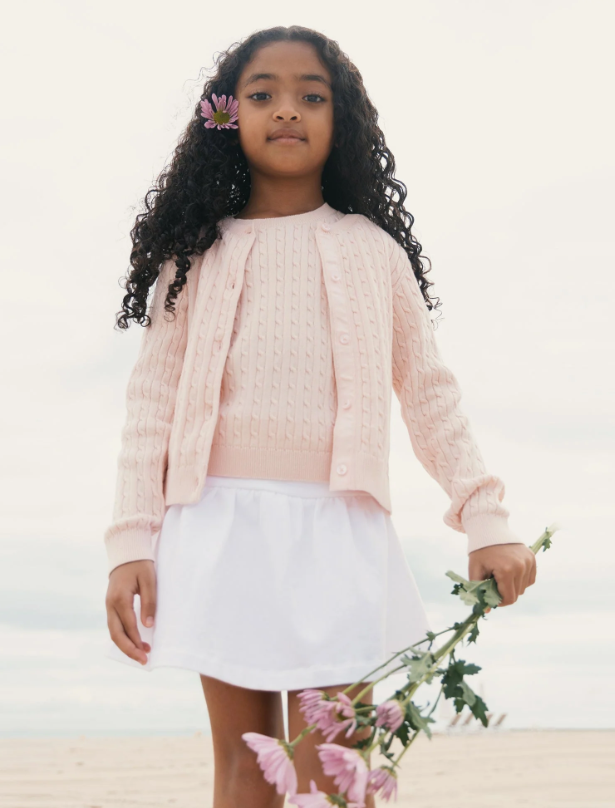 Our sporty french terry skort in soft organic cotton pairs comfort with picture-perfect style. Features a flouncy skirt, an easy pull-on elastic back waist, and a soft jersey inner short to ensure this look is ready for play. Pairs nicely with our collection of organic sweaters and tops.