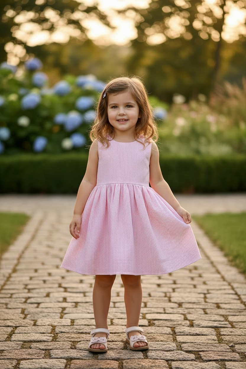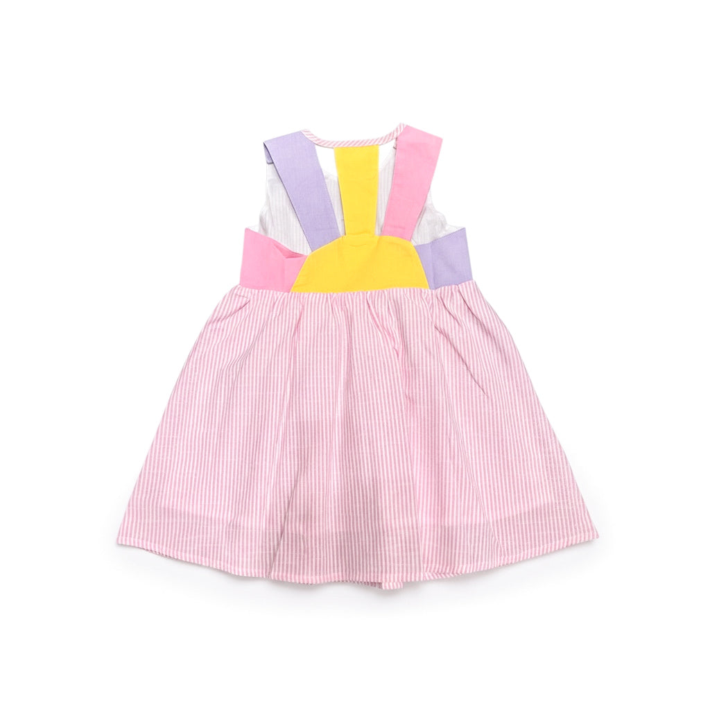 Breathable seersucker fabric keeps her cool and comfortable all day long. The bold color block back adds playful style perfect for spring adventures, playdates, and family moments. Charming, practical, and ready for anything.