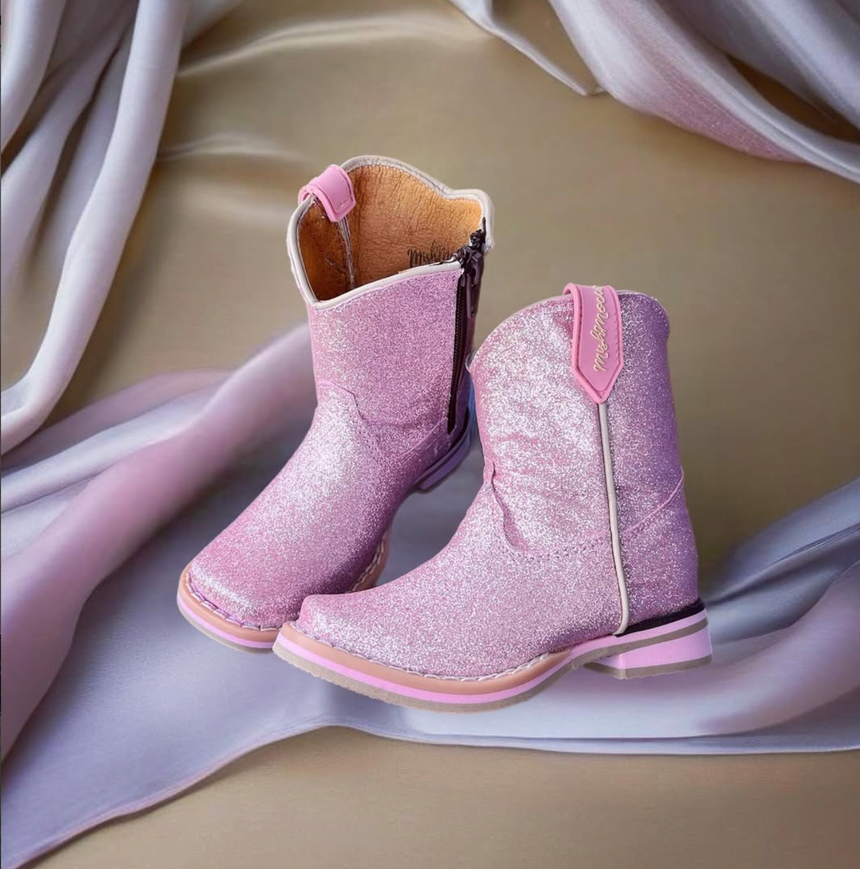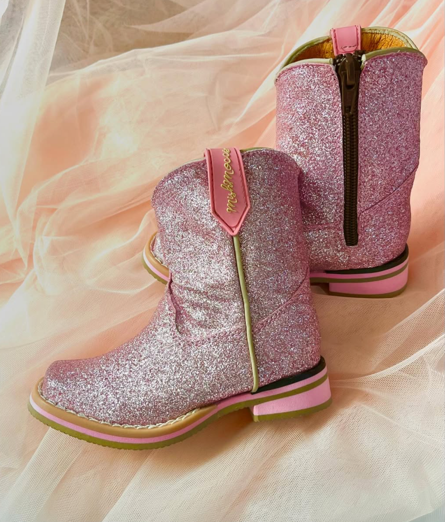 Let your little princess step into sparkle and style with these enchanting Pink Glitter Boots. Crafted with a genuine leather lining for comfort and a durable canvas outer, these toddler boots feature a wide square toe design that's both trendy and practical. The convenient side zipper makes getting ready a breeze, while the sturdy rubber outsole and double-stitched welt construction ensure lasting wear through all her adventures. With a modest 1¼" heel, these boots offer the perfect balance of fun and function for growing feet.