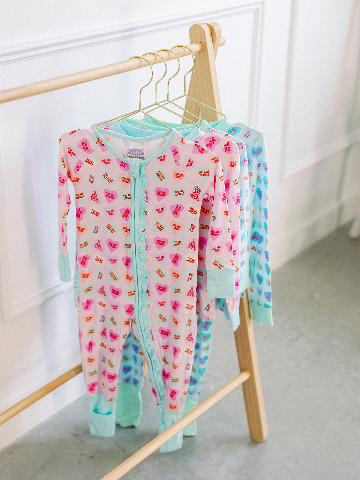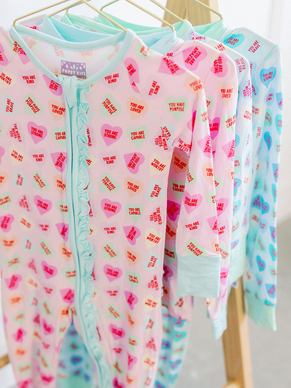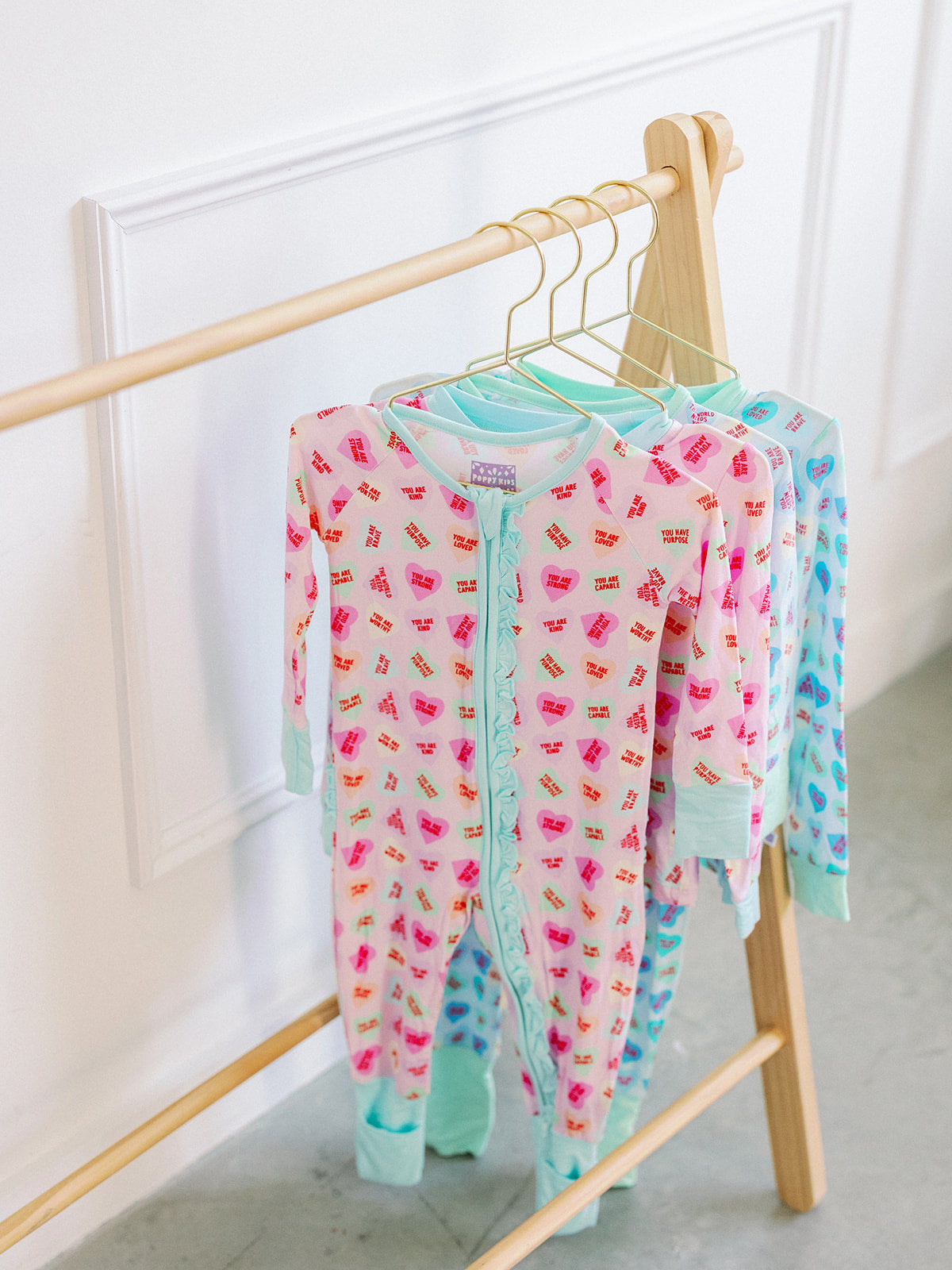 Choose between a convertible romper or matching 2-piece set—perfect for Valentine's Day or everyday wear! These adorable heart-print pajamas celebrate sisterhood with coordinating styles. Crafted from Poppy Premium's upgraded bamboo fabric, they're softer and thicker than ever before. The 95% bamboo viscose and 5% spandex blend delivers cloud-like comfort that little ones will love wearing day after day. Designed to fit snugly with a generous cut for extended wear, these pajamas are the cozy essential every girl needs.