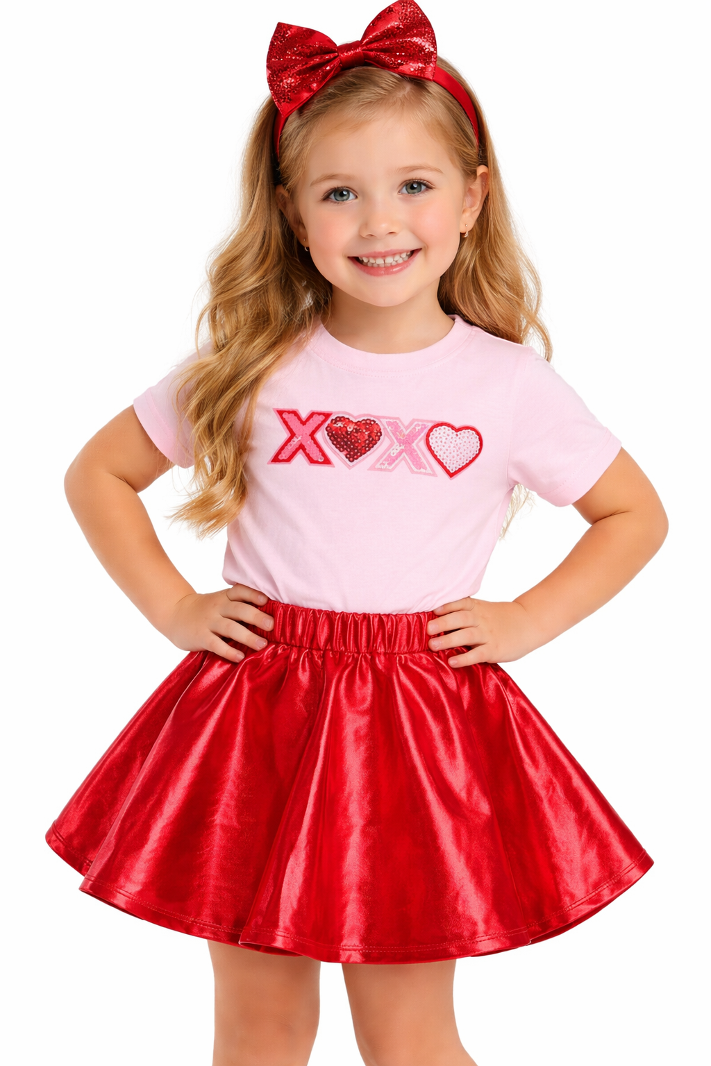 This festive red metallic skort combines sparkle with comfort for your little girl’s holiday wardrobe. Featuring built-in shorts for easy movement, it pairs perfectly with any Lulu Bebe Christmas top. Dress her in this stylish, comfortable skort and watch her shine at every festive occasion.