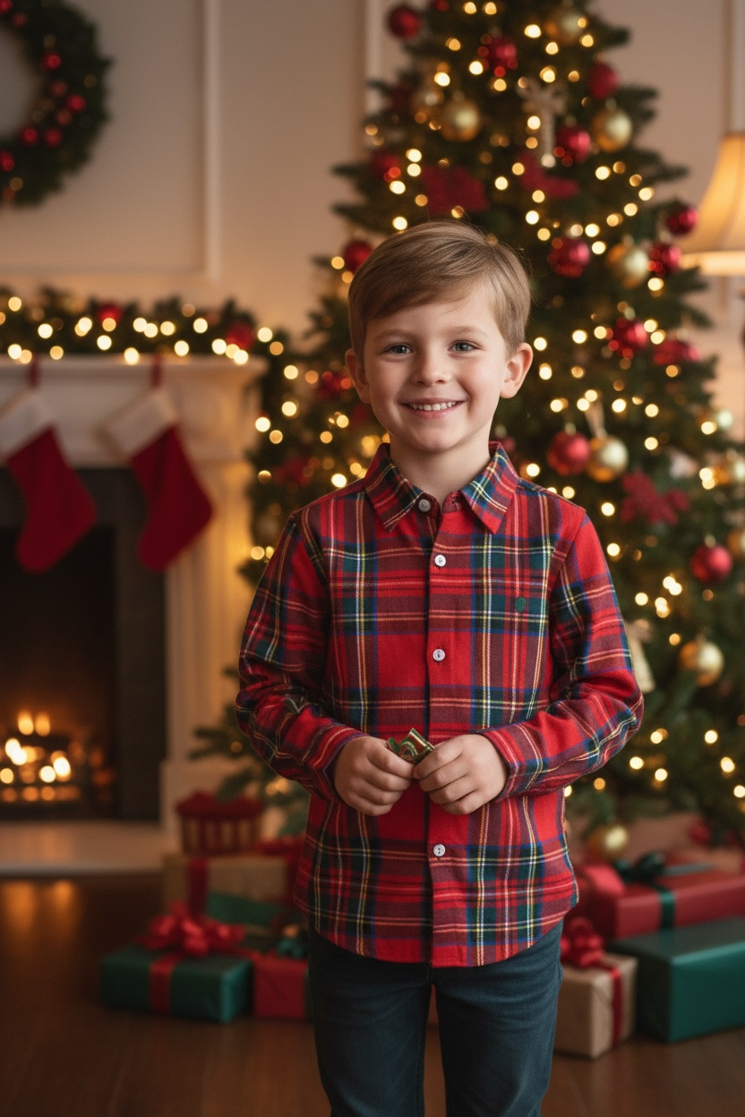 Dress your little one in festive charm with the Yuletide Tartan Oxford Shirt from The Oaks Apparel. Featuring a classic Christmas tartan pattern, this button-down adds a stylish holiday spirit to any outfit. Perfect for family gatherings or photos, it pairs beautifully with the matching Yuletide Tartan Dress to create adorable sibling sets. Celebrate the season in timeless style and comfort.
