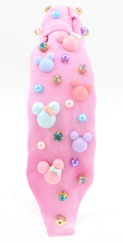 This adorable headband brings Disney magic to any outfit! Featuring charming Mickey and Minnie Mouse jewels in soft pastel hues, it's accented with multicolor pearls and sparkling rhinestones for extra sparkle. Perfect for little ones who love classic characters and a touch of whimsy. Comfortable and fun, it's an instant favorite for playdates, dress-up days, or adding character flair to everyday looks.