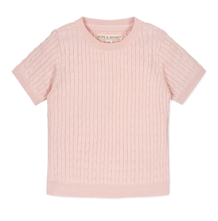 Pink Short Sleeve Cable Sweater - Hope & Henry