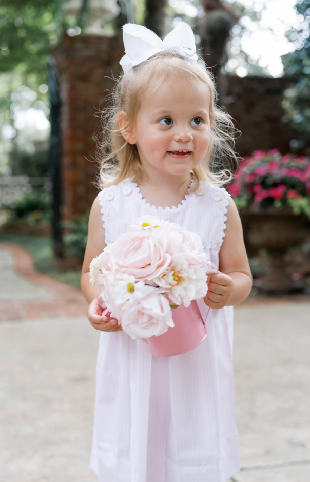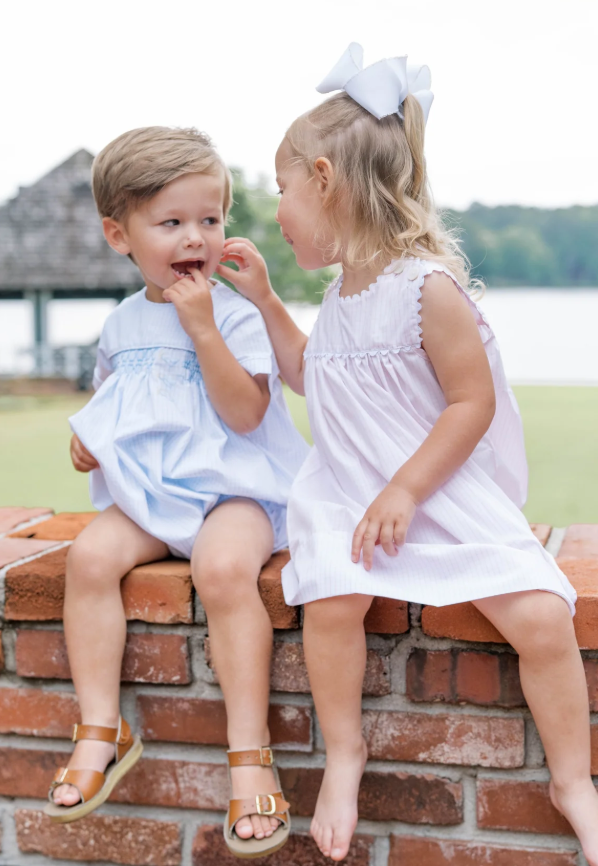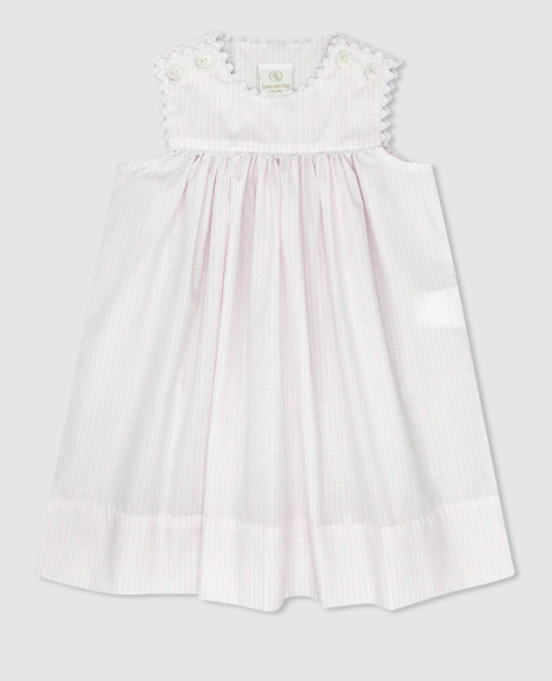 Timeless elegance meets practical comfort in this charming windowpane dress. Crafted from breathable woven cotton, it features a classic silhouette with delicate white ric rac trim and convenient shoulder buttons for effortless dressing. The sleeveless design makes it ideal for warm weather, while the soft, quality fabric ensures all-day comfort for your little one. Perfect for both everyday wear and special occasions, this dress brings a refined, feminine touch to any child's wardrobe.