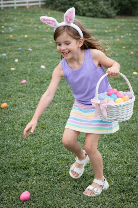 Elevate your child's wardrobe with this stunning Lavender Razorback Performance Top, designed for active kids who love the outdoors. The breathable fabric keeps up with playground adventures, sports practice, and weekend explorations, while the classic razorback style offers a flattering, comfortable fit. Whether she's cheering at events or playing with friends, this versatile top delivers both style and performance. Complete the look by pairing it with our Pastel Striped Tennis Skort for an effortlessly coordinated ensemble that's as practical as it is adorable.