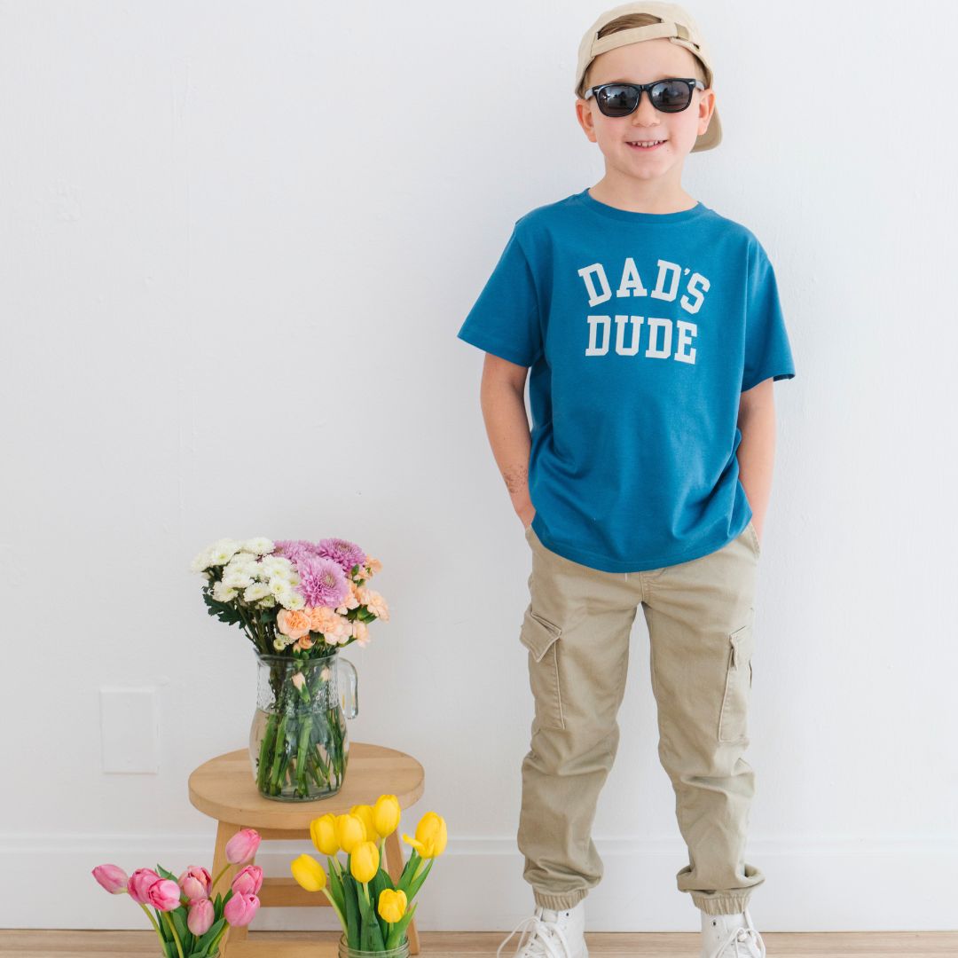 The Dad's Dude Short Sleeve T-Shirt is a fun and handsome t-shirt for boys celebrating Father's Day or for showing love to Dad all year round!