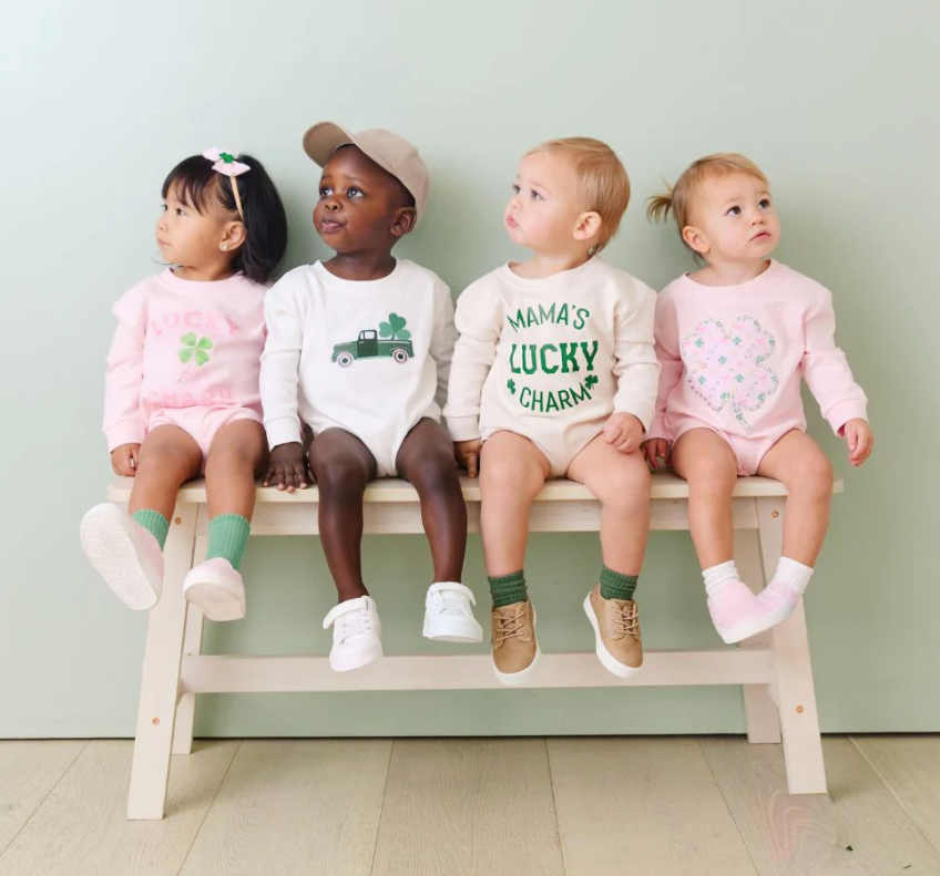 This incredibly soft romper is perfect for tiny treasures, featuring a bold green graphic that lets everyone know just how lucky his mama is this St. Patrick's Day!