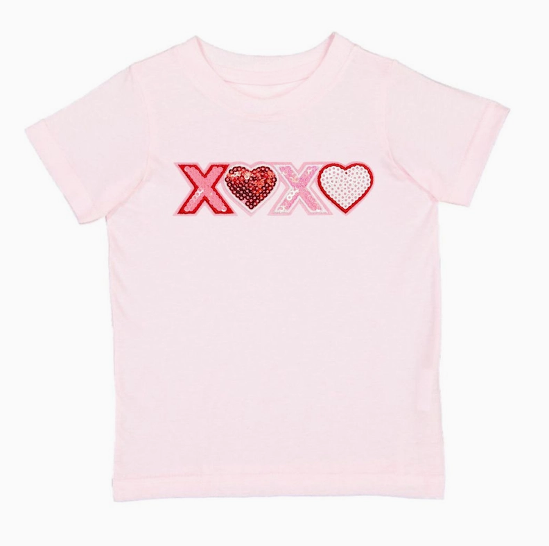 Sparkle and shine this Valentine’s Day in the sweetest tee—featuring sequin XOXO heart patches for a look full of love and charm!