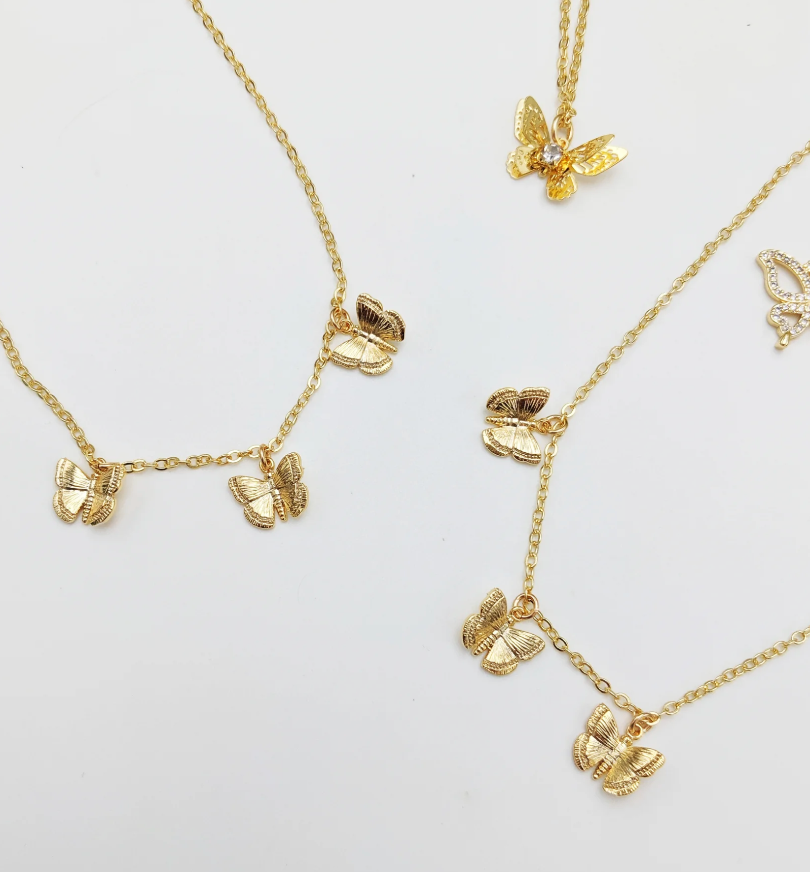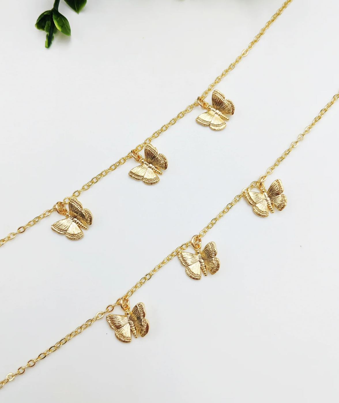 Delicate gold butterflies flutter gracefully along a shimmering chain, creating an enchanting accessory that celebrates nature's most beloved symbol. This triple butterfly necklace features three intricately detailed butterflies in warm gold tones, perfect for layering or wearing solo. Ideal for butterfly enthusiasts and those who appreciate meaningful, elegant jewelry, this piece makes a thoughtful gift that captures timeless beauty and transformation. A versatile addition to any collection.