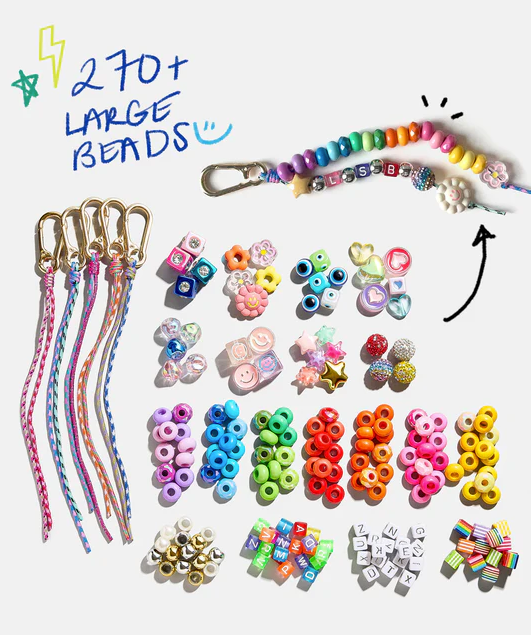 - A mix of 270+ oversized beads to mix and match — smiley faces, stars, hearts, pearls, and more!