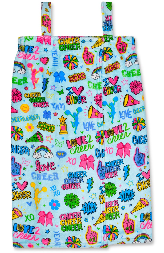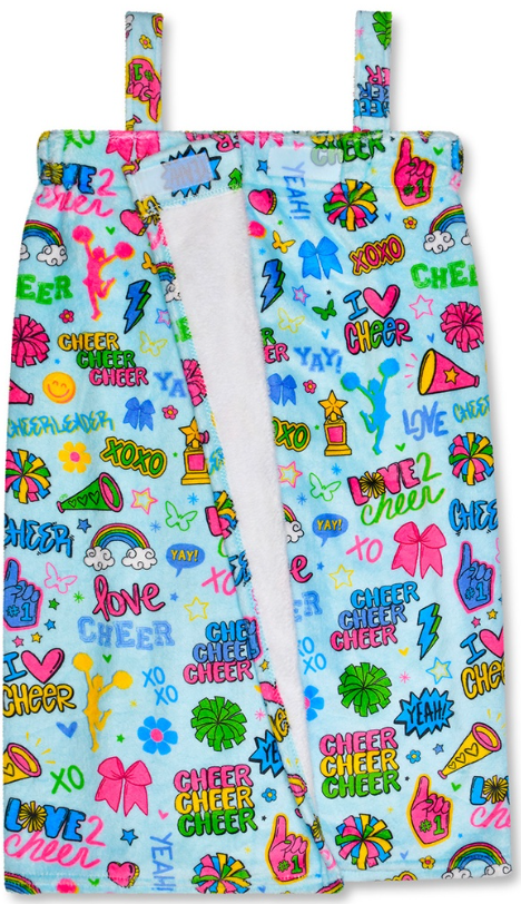 Fits girls aged 10-14 Cheer camp just got cozier! This spa wrap wraps your cheerleader in soft, comfortable style with an adjustable velcro closing and straps that fit just right. Made from easy-care 100% polyester and machine washable, it's perfect for post-practice relaxation or poolside confidence. Whether she's unwinding after a big routine or getting ready for the next event, this wrap keeps her feeling cool and comfortable all day long.