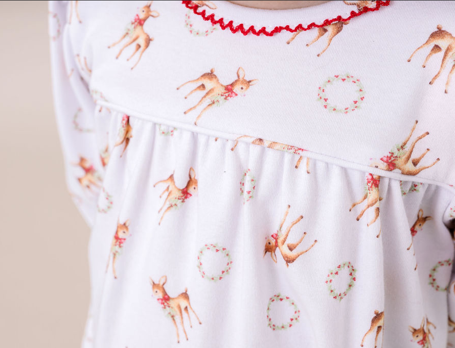 Sweet and festive, the Mother May I Bubble is crafted in our exclusive Joyful Christmas print for a playful holiday look. Made from soft knit with long sleeves, it's trimmed in delicate red picot around the neckline for a classic finishing touch.