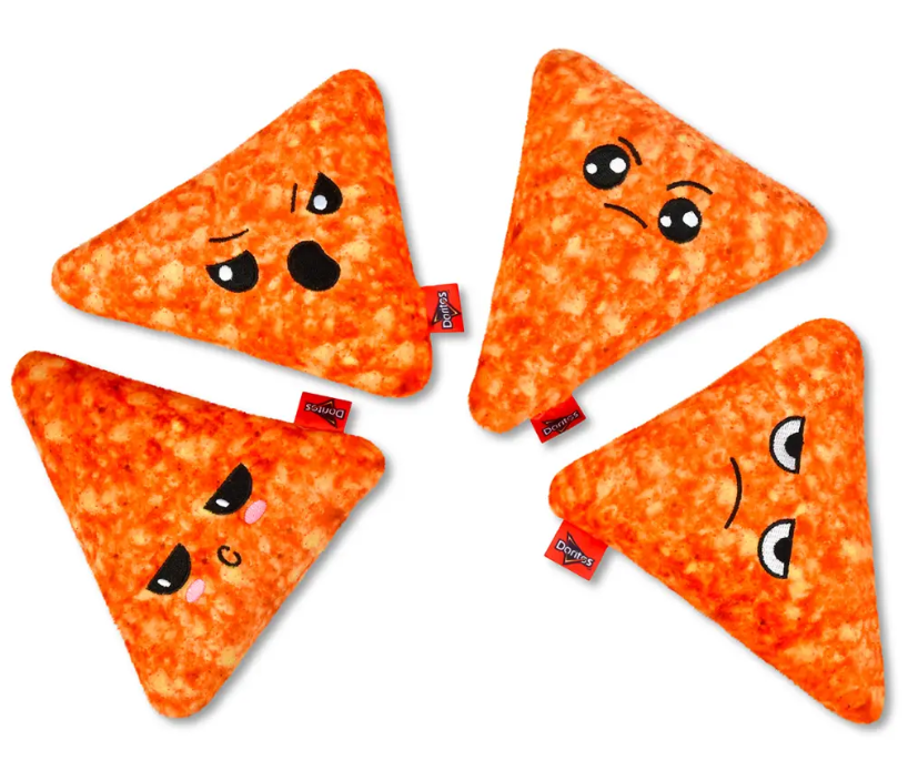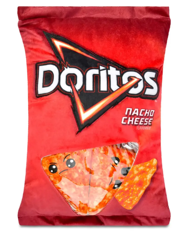 Squeeze, squish, and snuggle with this interactive Doritos plush pillow! Unzip the soft fleece cover to reveal six adorable, removable plush chips hiding inside—perfect for imaginative play and cuddly comfort. Made from super soft 100% polyester fleece with a plush polyfiber fill, this 11½" × 17" × 5" pillow is ideal for Doritos fans and snack lovers of all ages. Mix and match the squeezable chip pieces for endless fun, then zip them back inside for storage. A cheesy good time in pillow form!