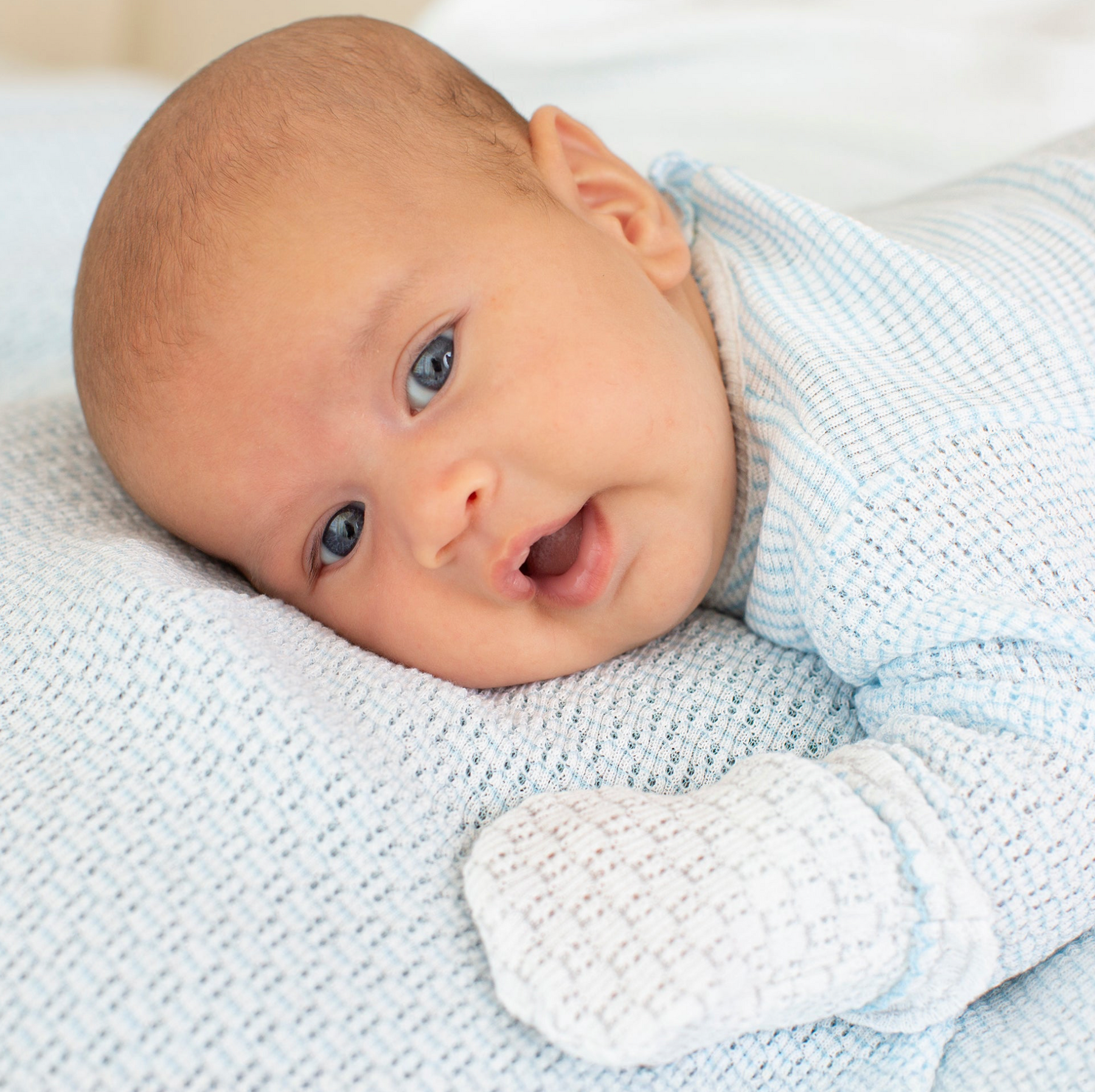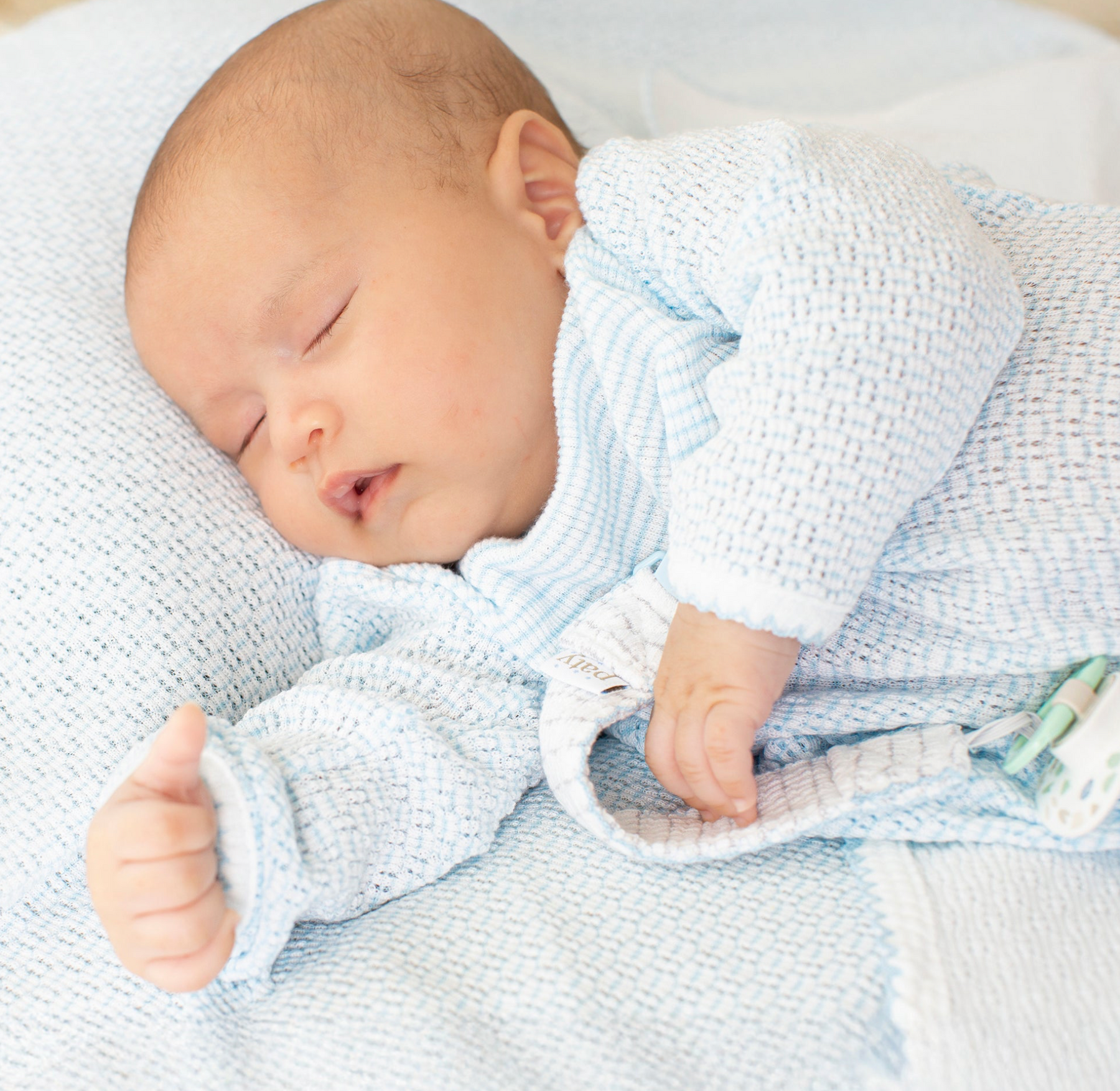 Choose from Paty Knit Long Sleeved Romper in Classic Blue or Paty Knit Romper with Blue Pima Cotton Binding. Paty Knit, Made in Houston, Texas