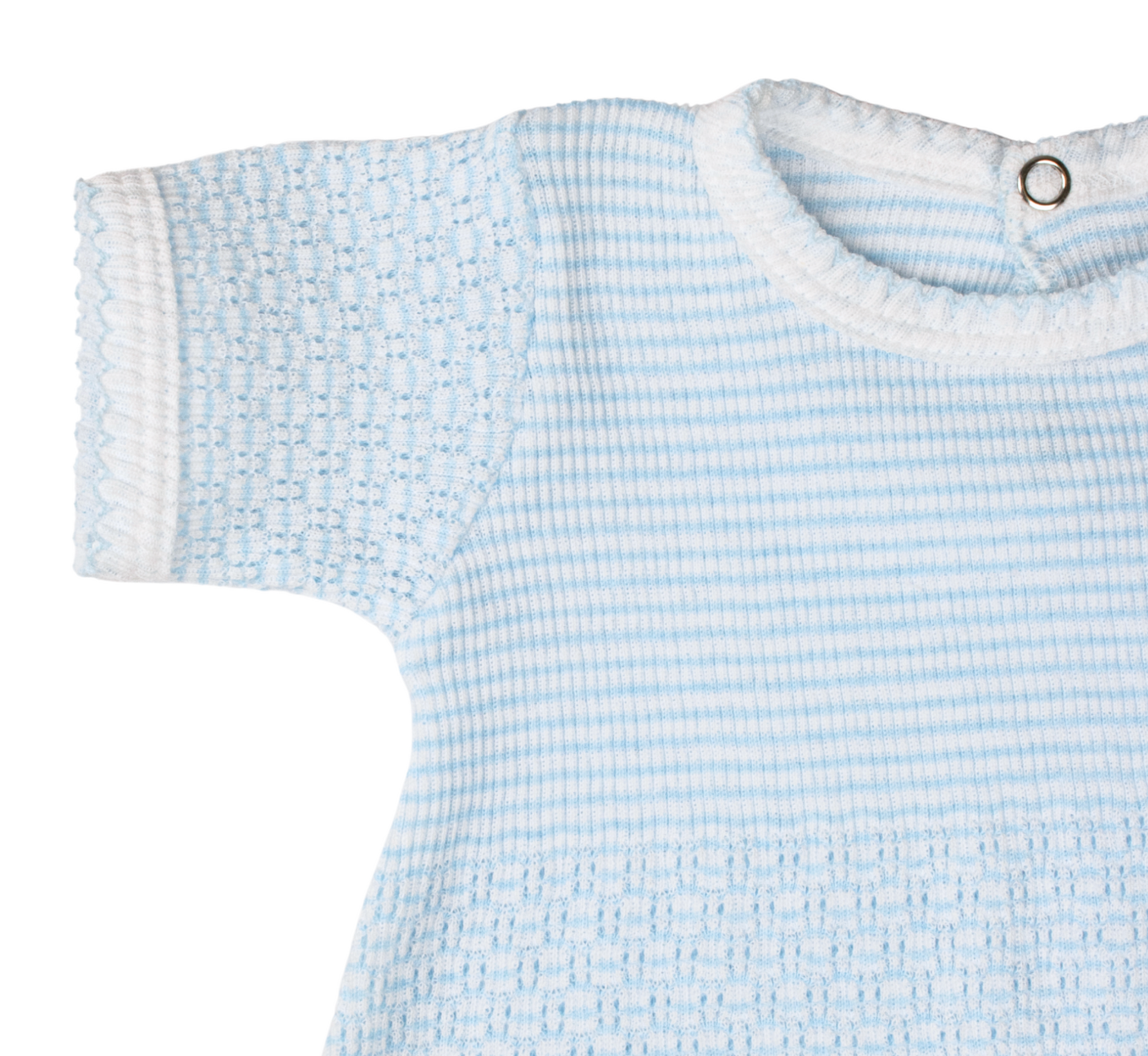 Size NewbornIntroducing the Paty Knit Boys Blue Bubble - the perfect blend of style and comfort! Made with Paty's 50/50 knit blend and crafted in Houston, TX, this knitted bubble provides a soft and comfortable fit for your little boy.