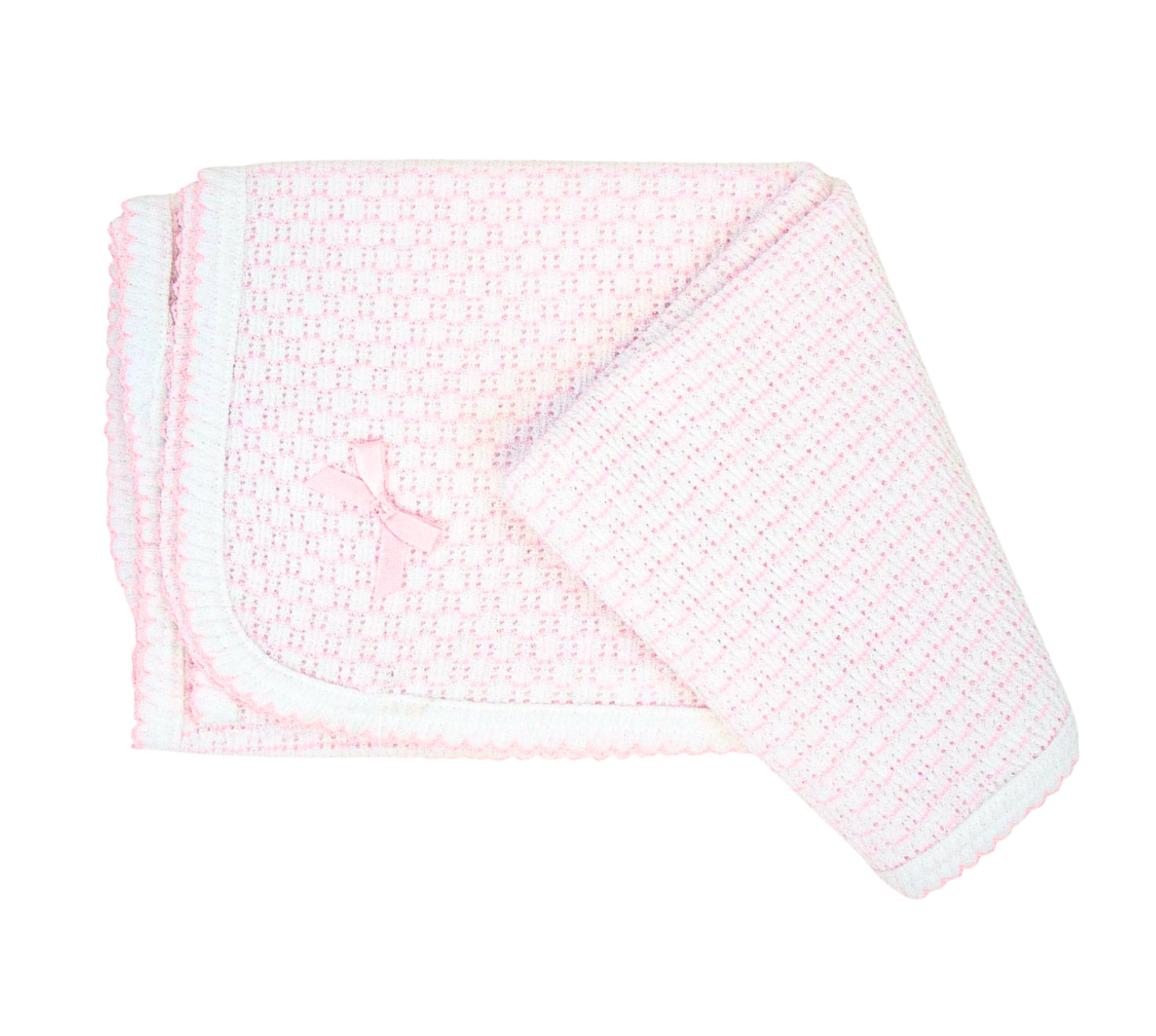 Choose from Pink Pinstripe or Pink Classic, both blankets adorned with a bow.
