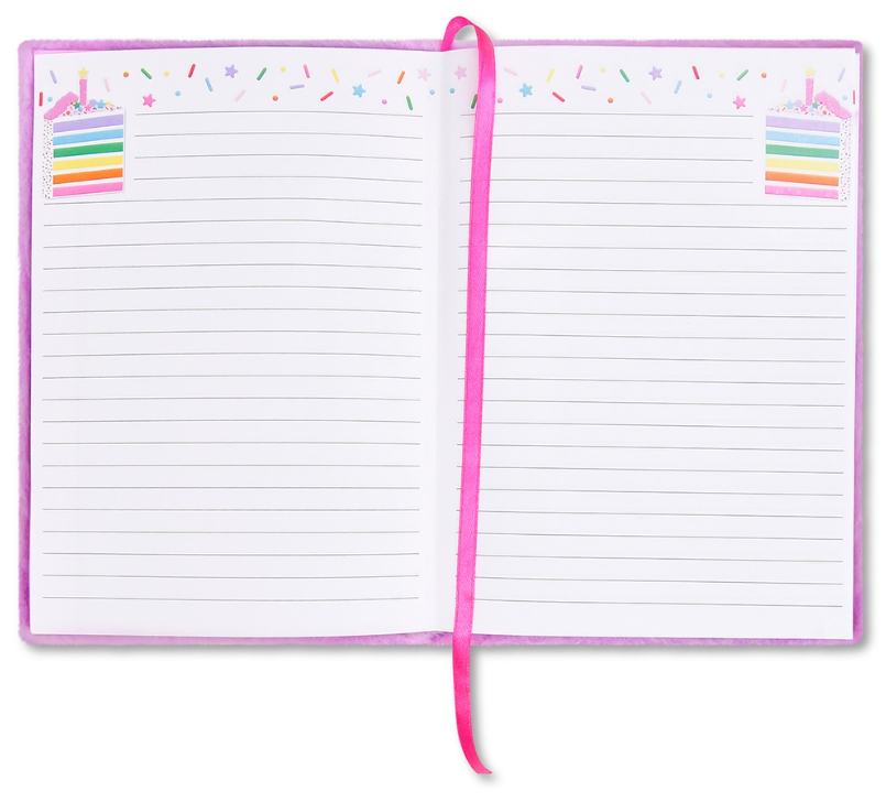 Celebrate in style with this adorable Sequin Cake Fuzzy Journal—the perfect companion for capturing birthday memories and dreams! Wrapped in a soft, fuzzy cover adorned with colorful chenille patches and embroidered details, this journal invites creativity at every turn. Inside, 160 vibrant lined pages await your thoughts, sketches, and special moments. Sturdy bookbound construction ensures your treasured entries stay safe and secure. At 6 1/4" wide by 8 1/2" tall, it's the ideal size to toss in a backpack or keep on a nightstand. Whether it's a birthday gift for yourself or someone special, this journal makes journaling feel like a celebration.